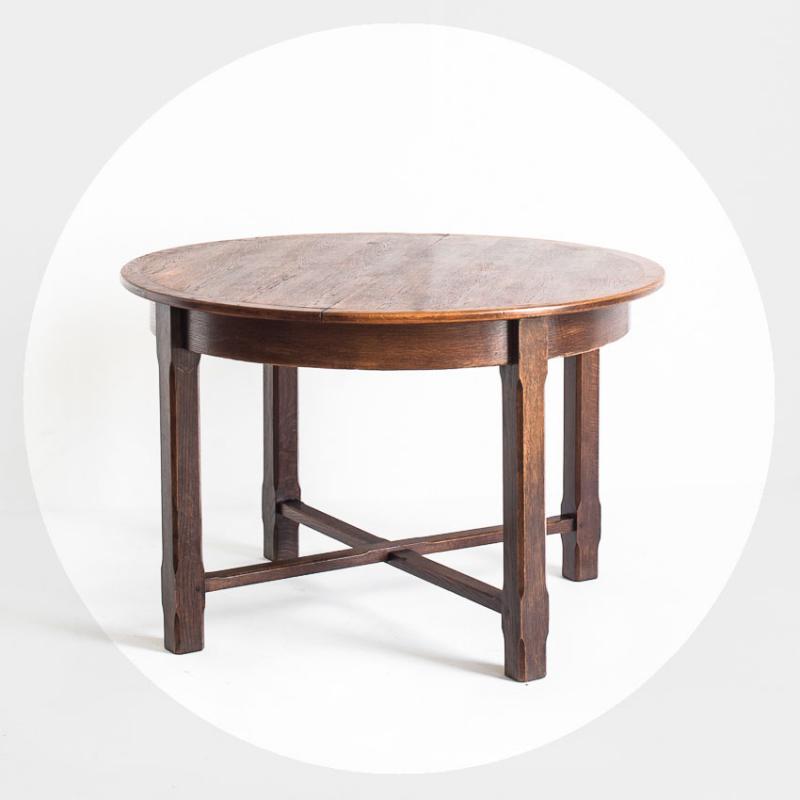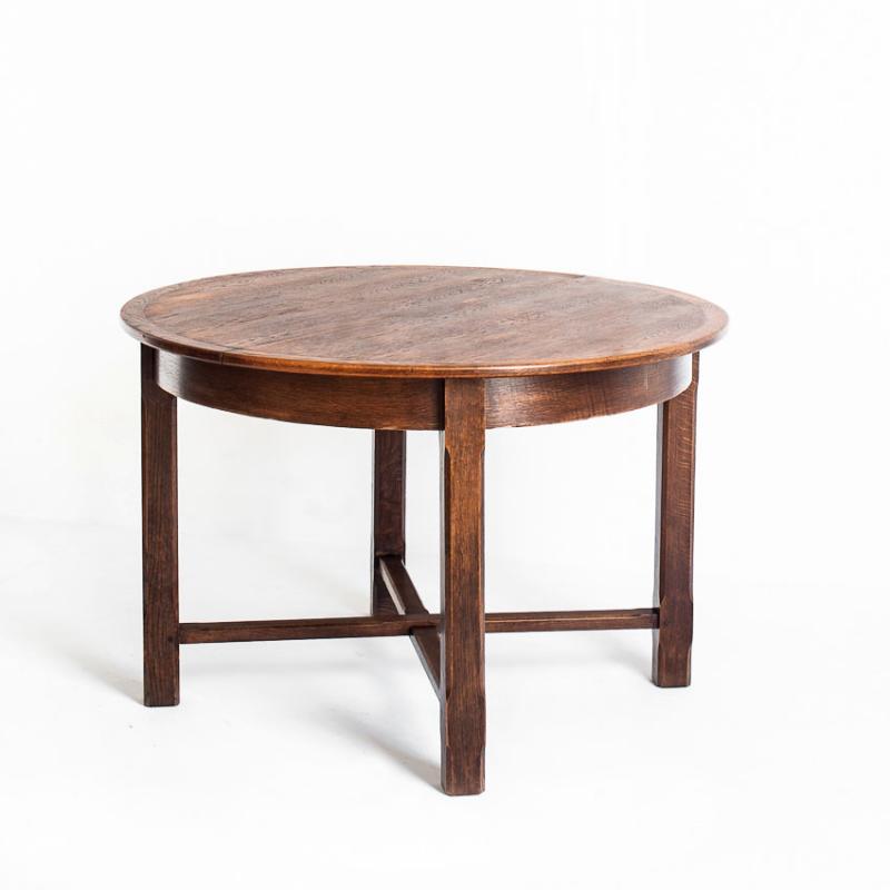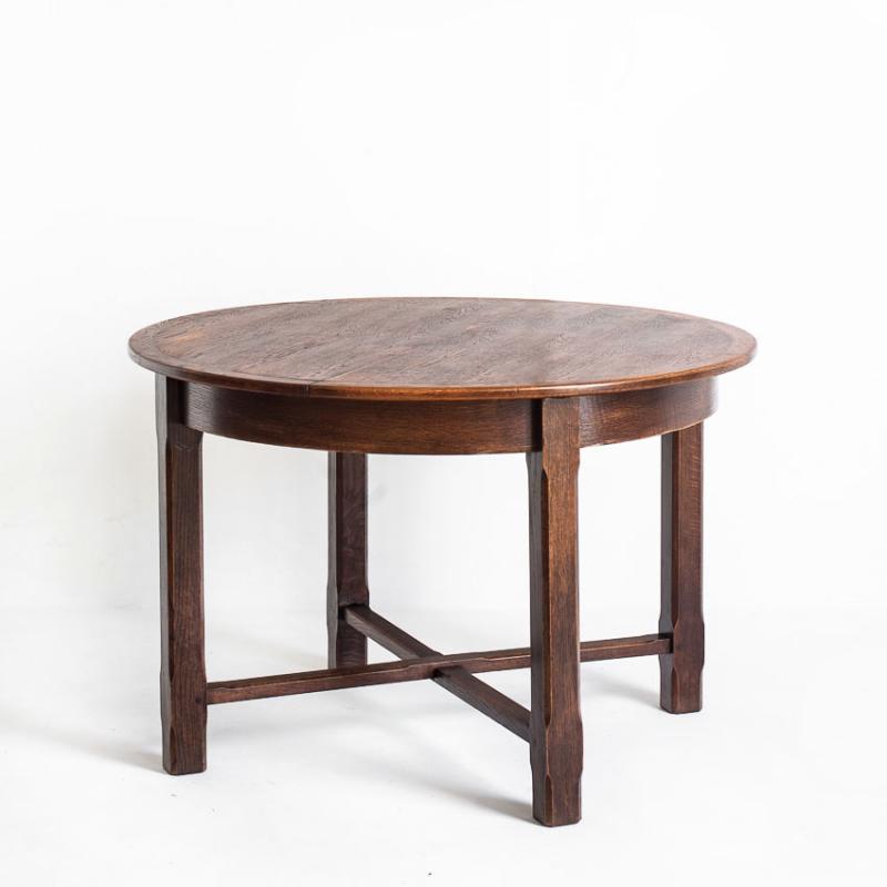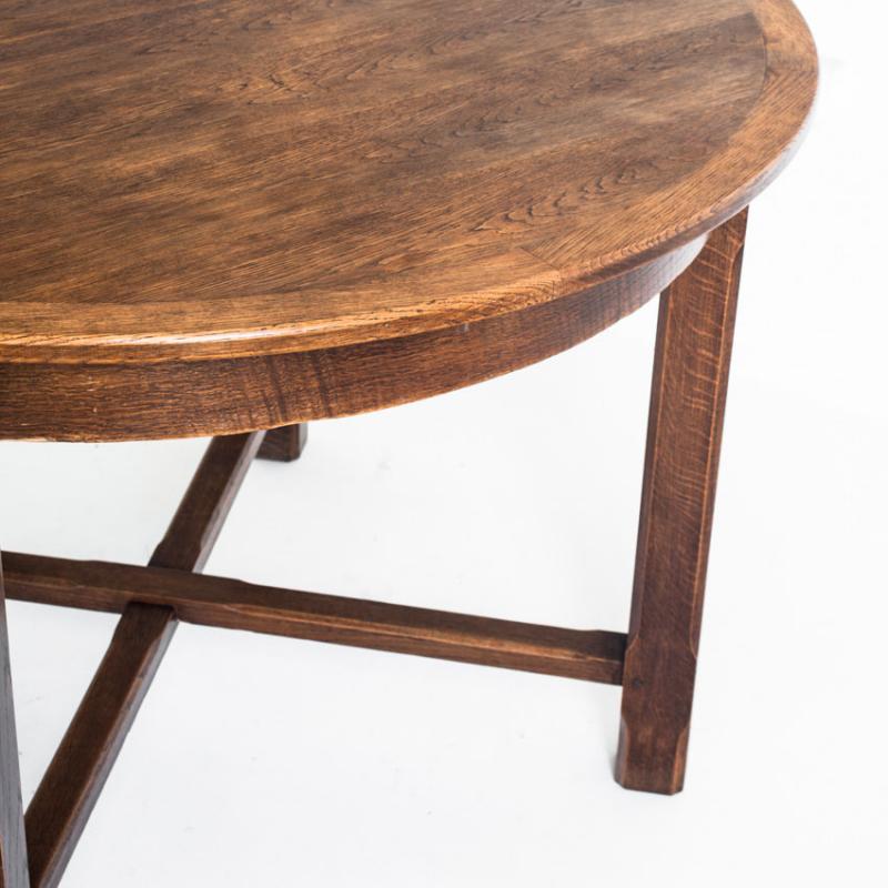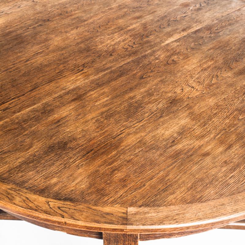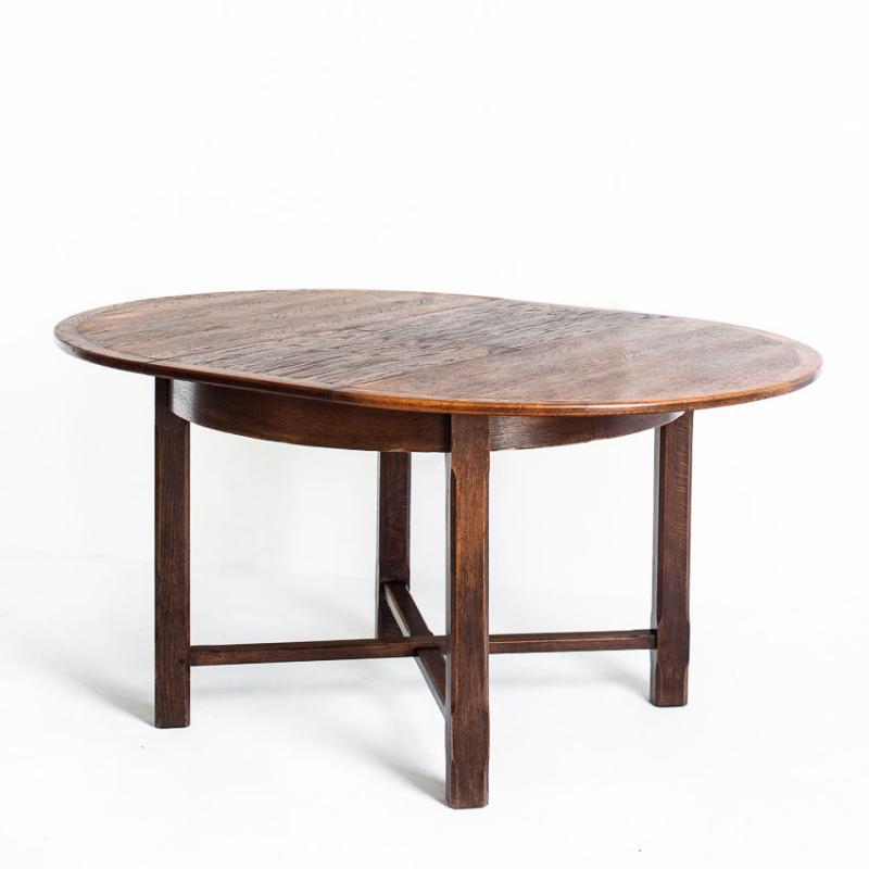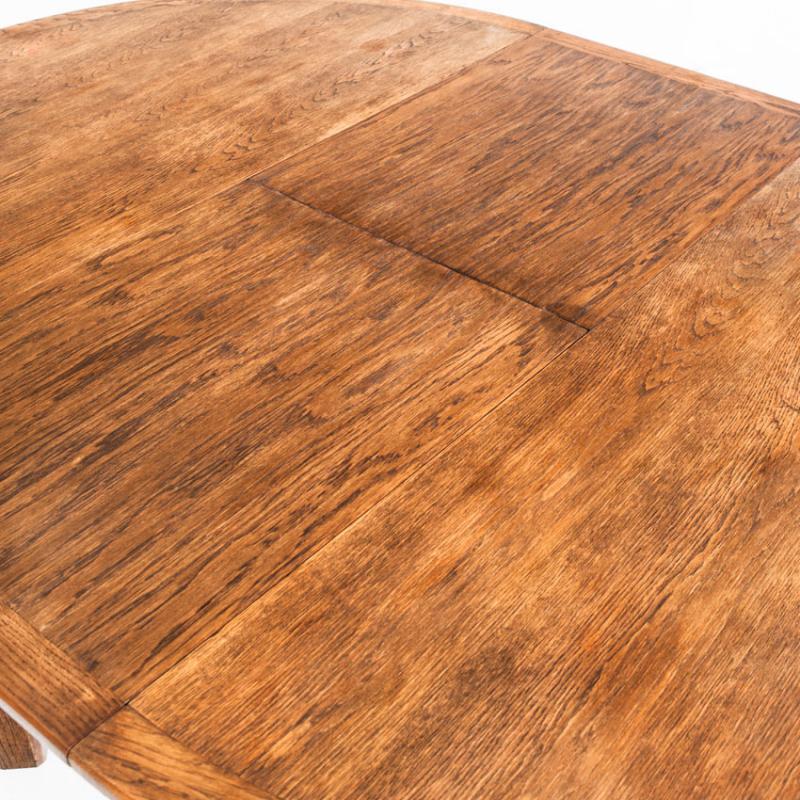 Taula amb extensió central vintage. Fusta de roure. França, anys 60.