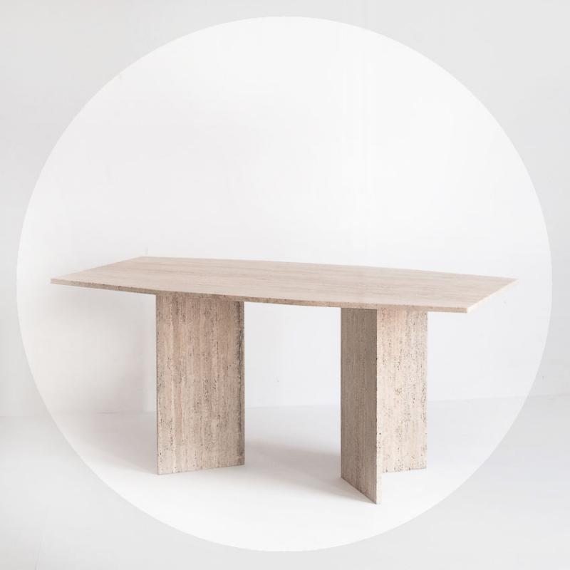 Taula de menjador de marbre travertí - Italia, anys 90.