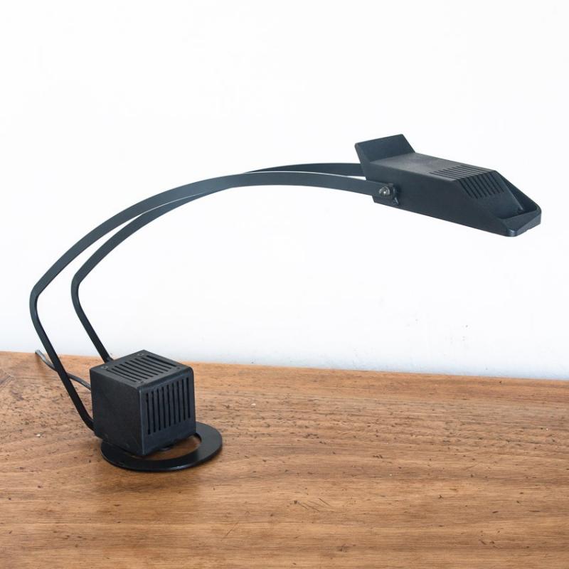 Lámpara de sobremesa FASE (Madrid), modelo Nutria. Metal esmaltado. Orientable. Usa bombilla halógena. España años 70. 2 unidades disponibles. Precio por unidad.