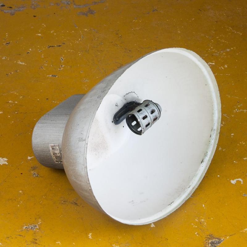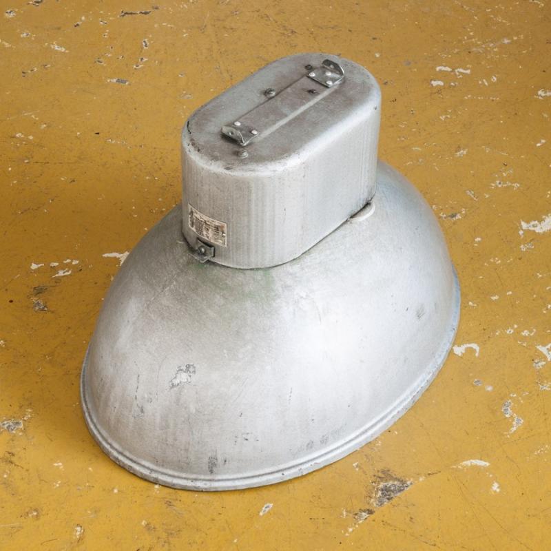 Lámpara industrial de techo. De hierro. Polonia, años 60. 2 unidades disponibles. Precio por unidad.