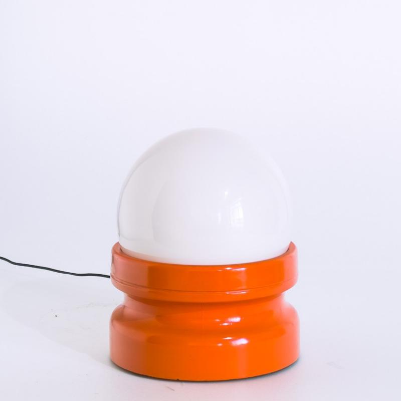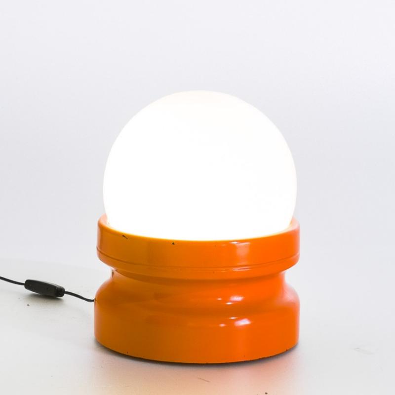 Lámpara sobremesa cristal blanco y base de fibra de vidrio. España, años 70.