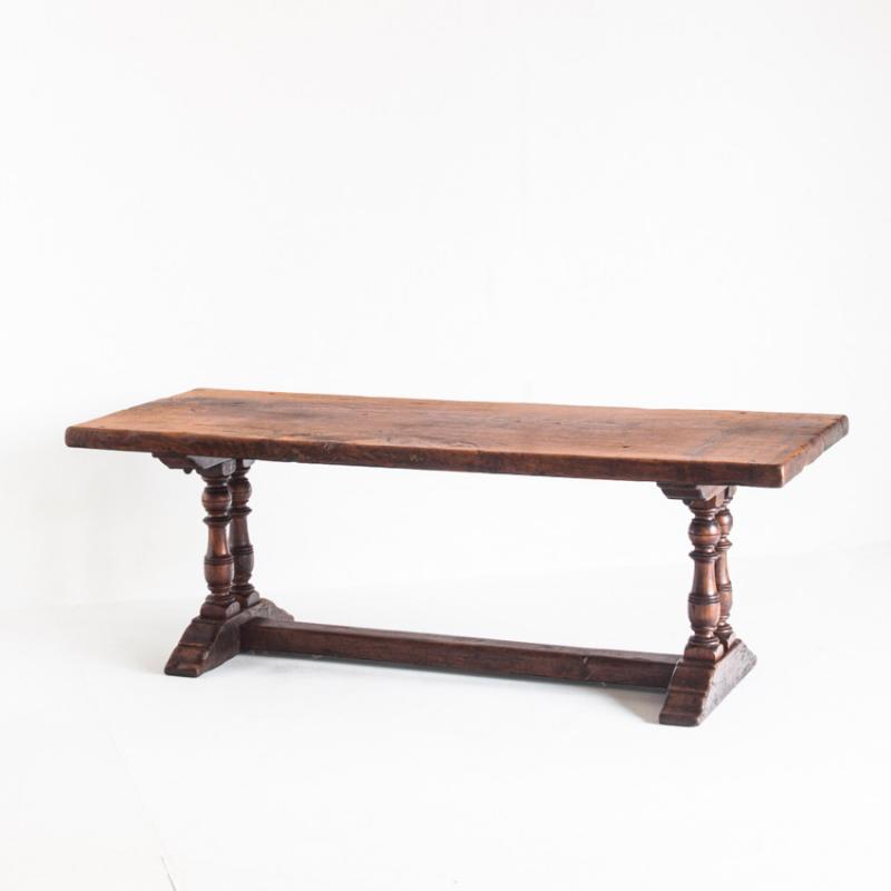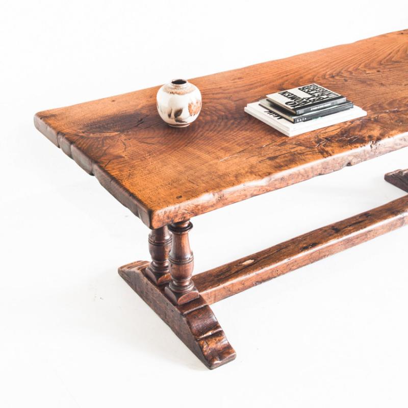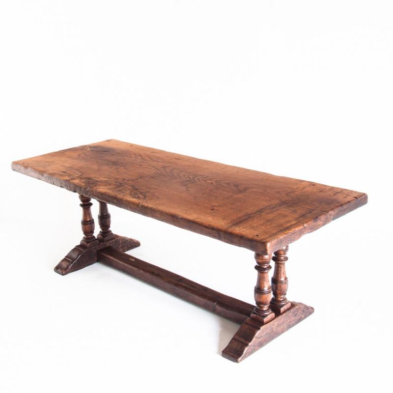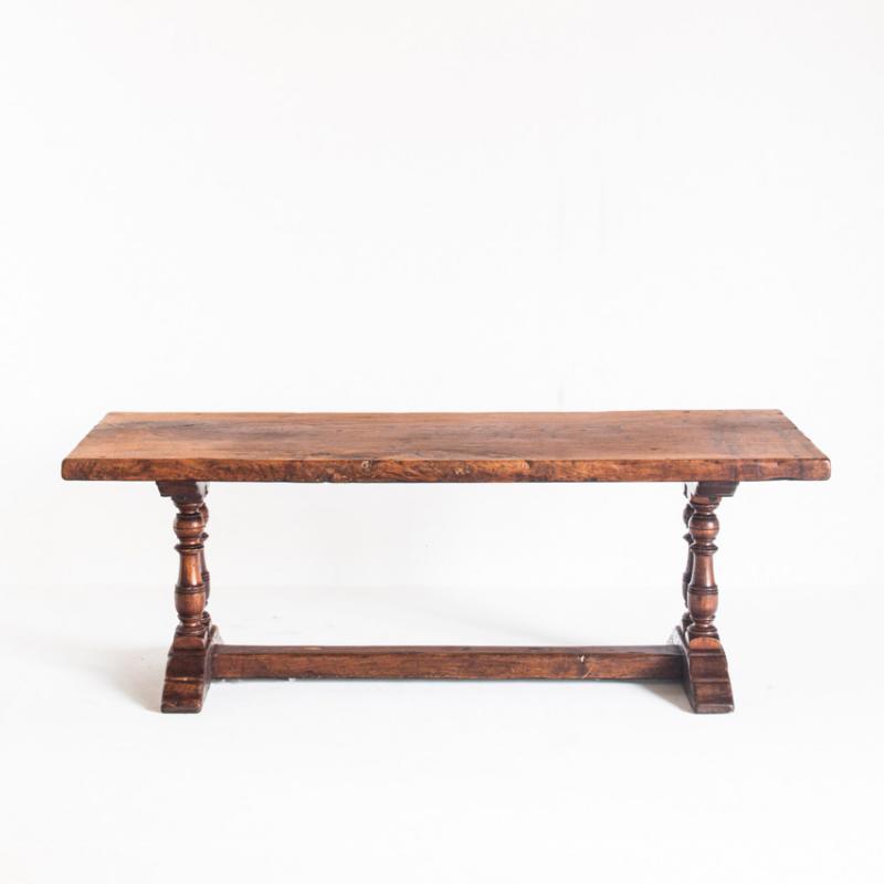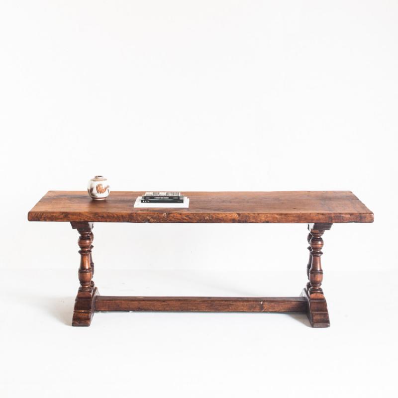Mesa baja madera de roble. Sobre de una sola pieza. Patas torneadas. Francia, principios de siglo XX.