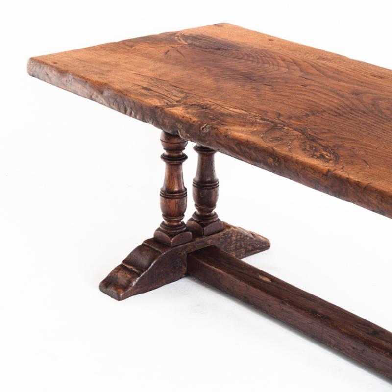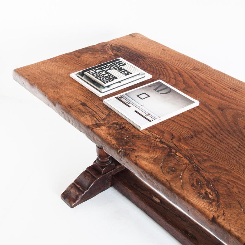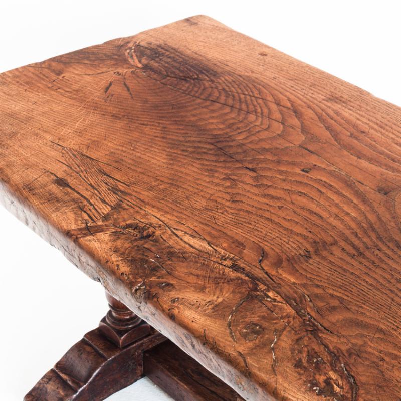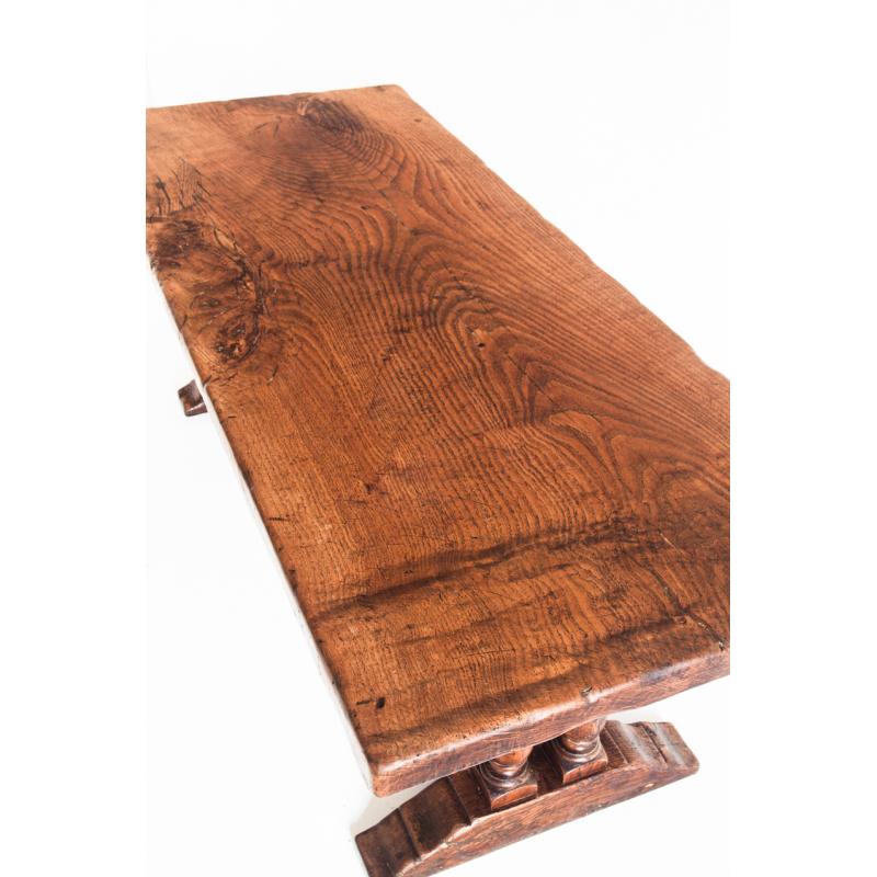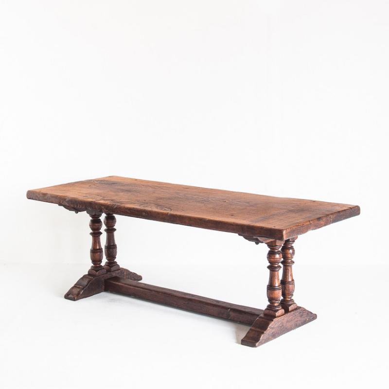 Mesa baja madera de roble. Sobre de una sola pieza. Patas torneadas. Francia, principios de siglo XX.