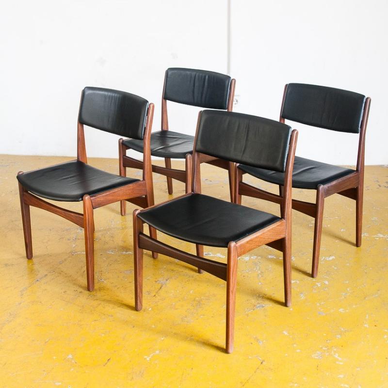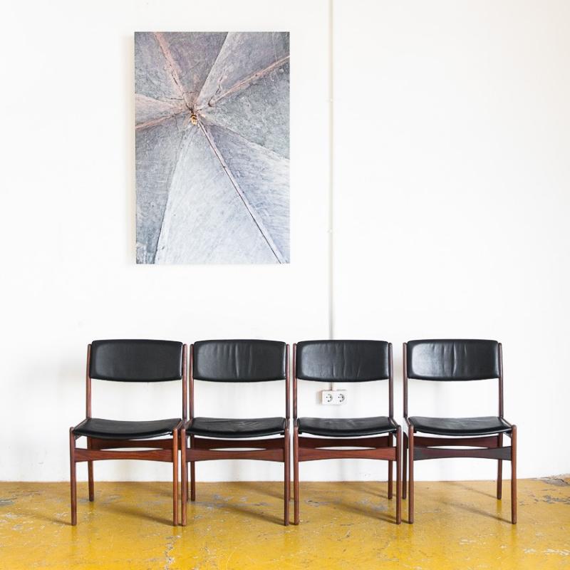 Conjunto 4 sillas estilo escandinavo. Dinamarca, años 60. Poul Volther