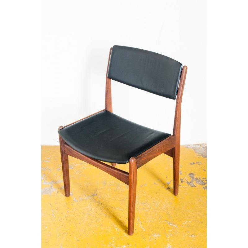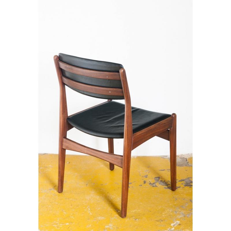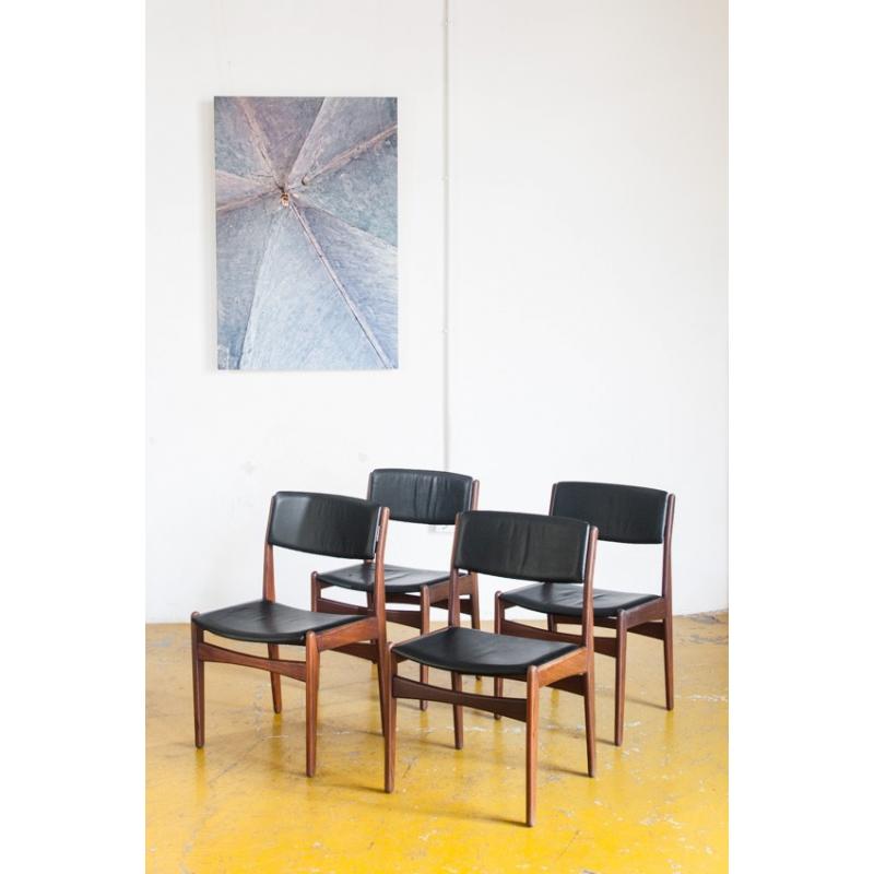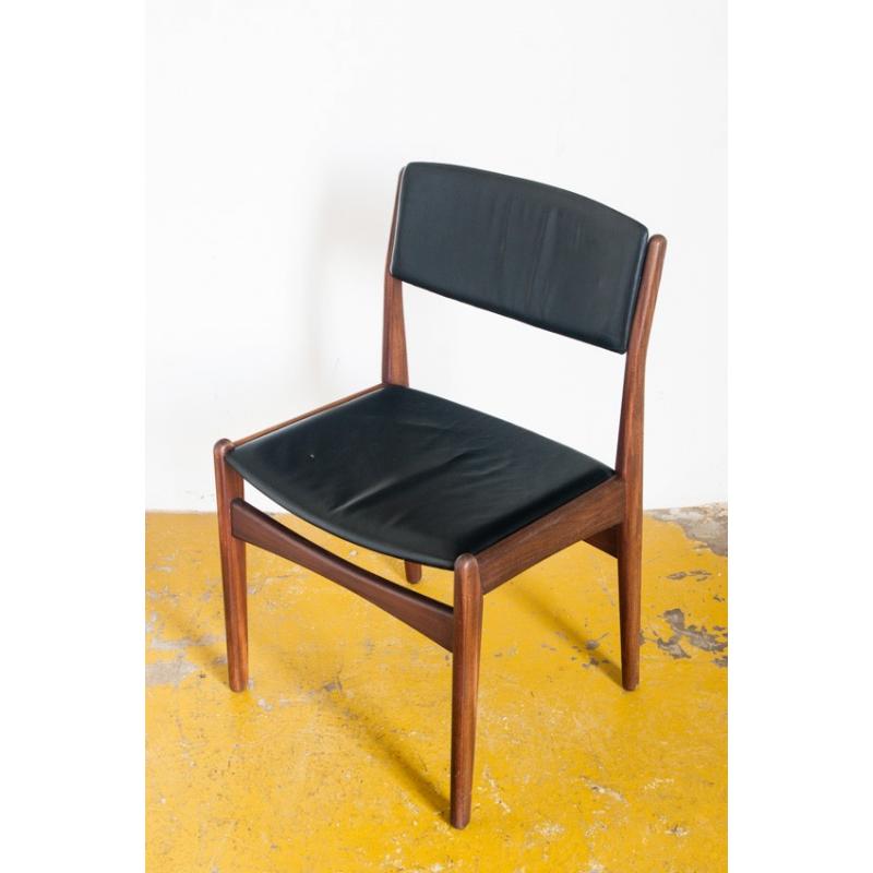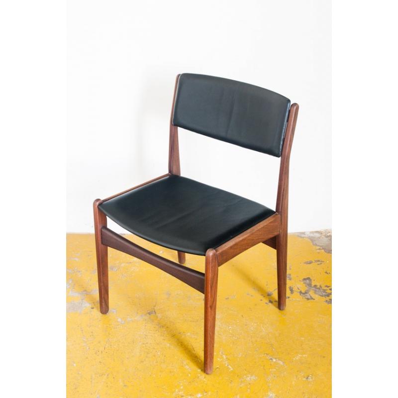 Conjunto 4 sillas estilo escandinavo. Madera de teca y tapicería de cuero. Diseño de Poul Volther, editado por Frem Rojle. Dinamarca años 60. Precio conjunto.