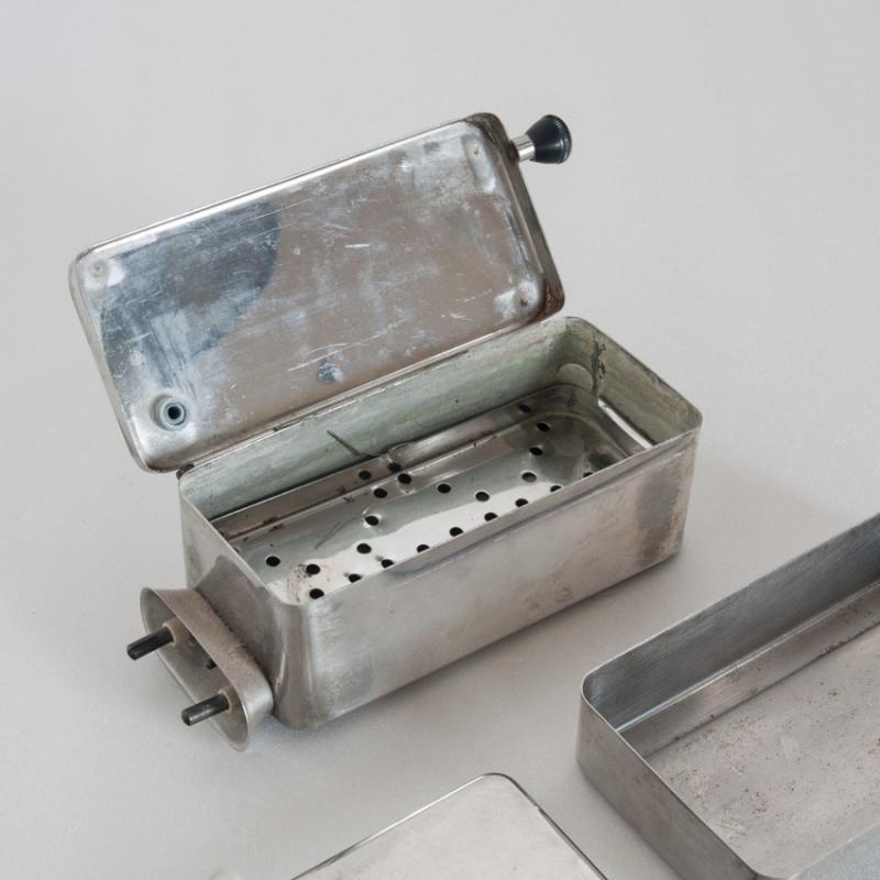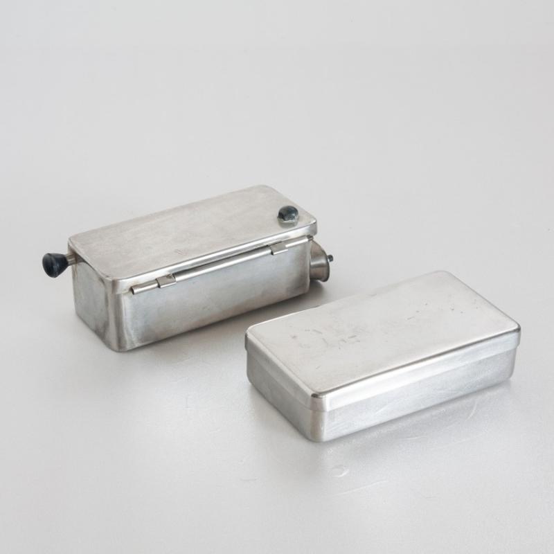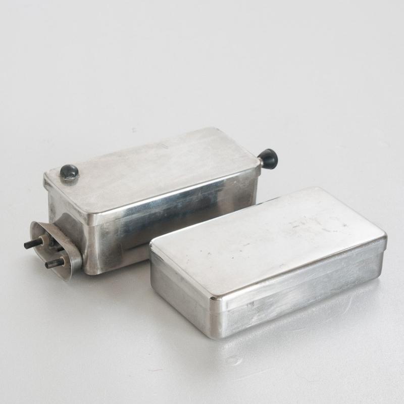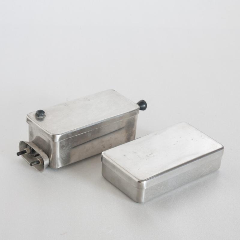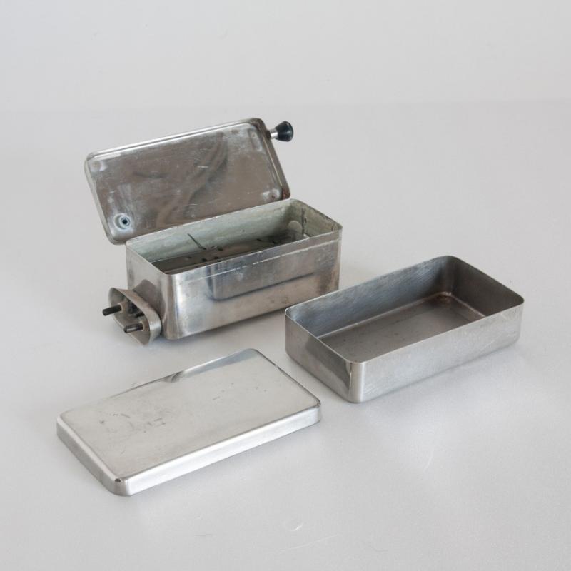 Pareja de cajas de consultorio médico. Acero inoxidable. Años 60. Como decoración.