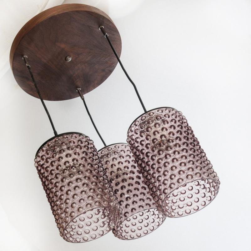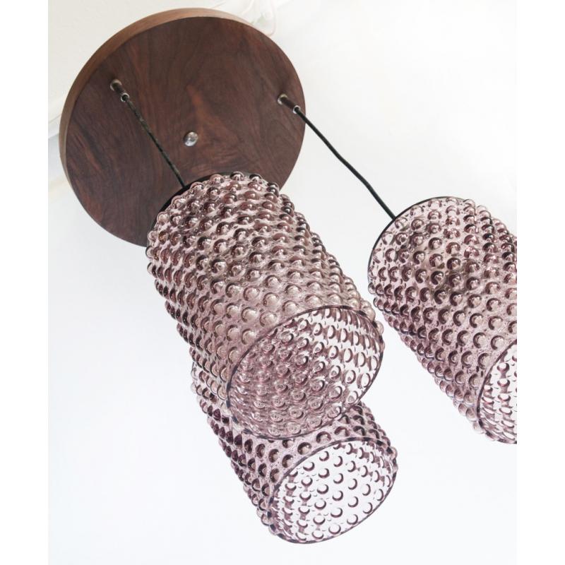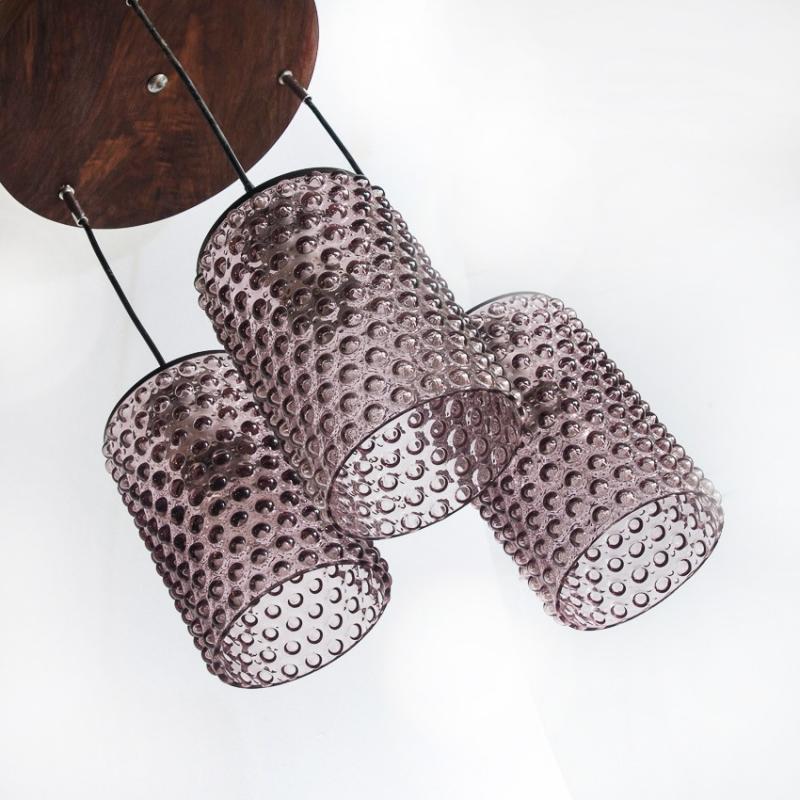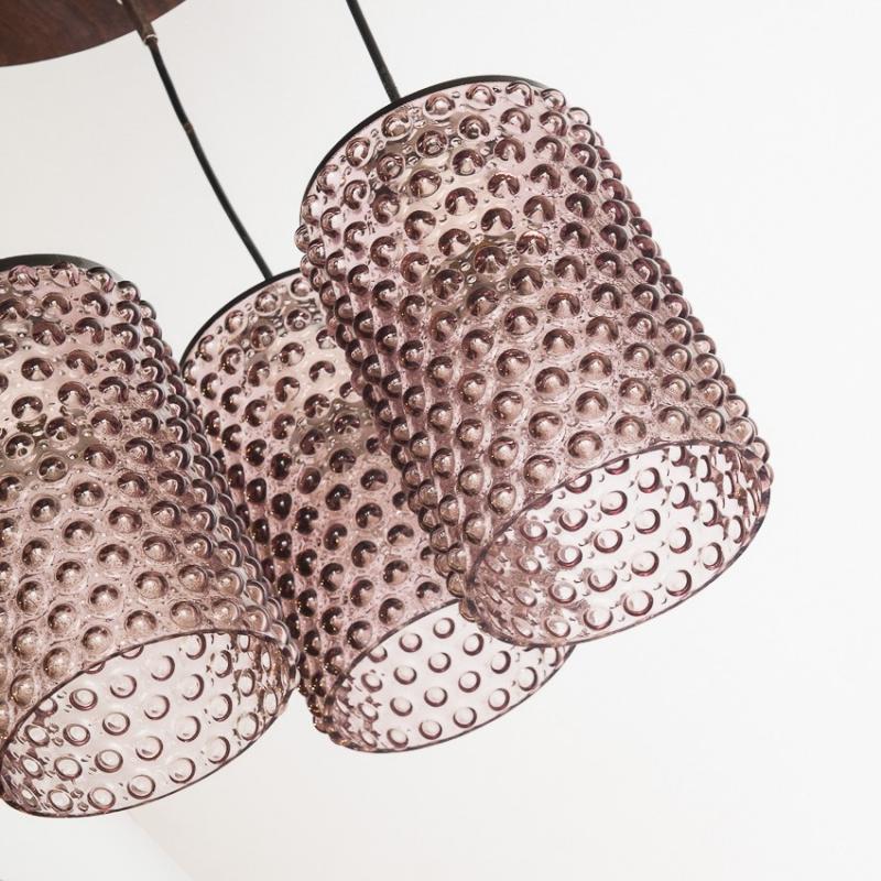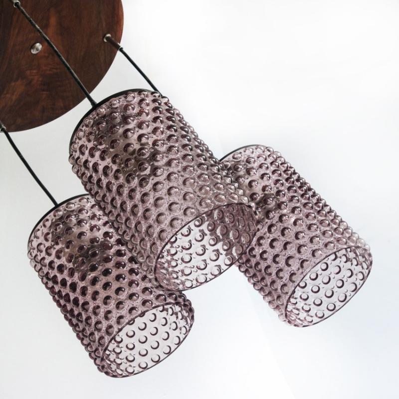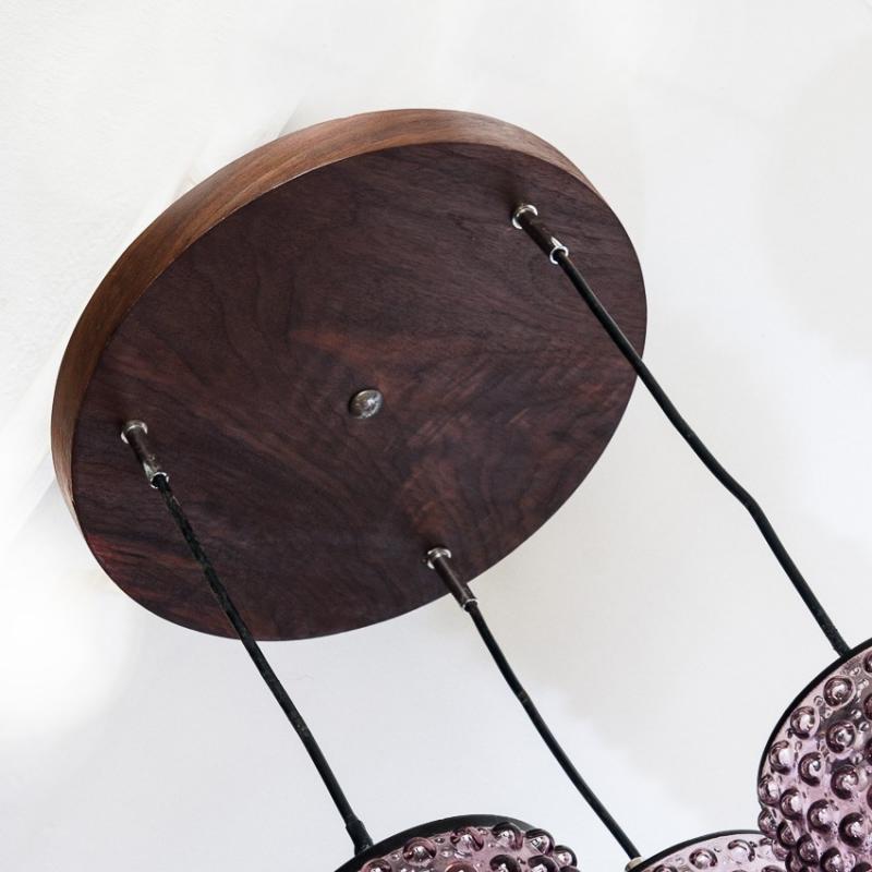 Lámpara de techo de cristal y madera. Francia, años 60.