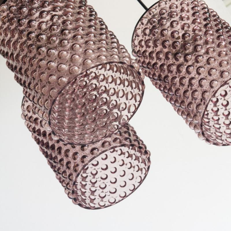 Lámpara de techo de cristal y madera. Francia, años 60