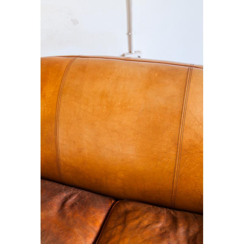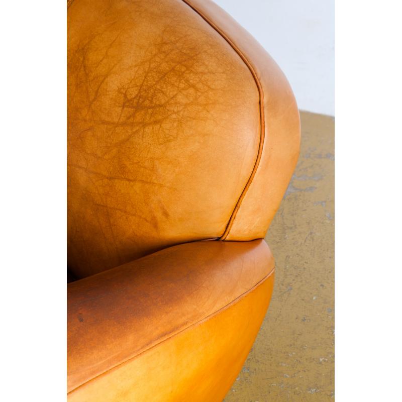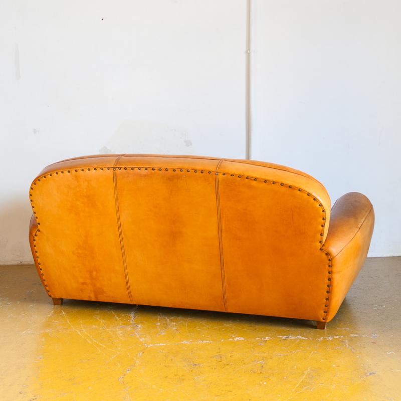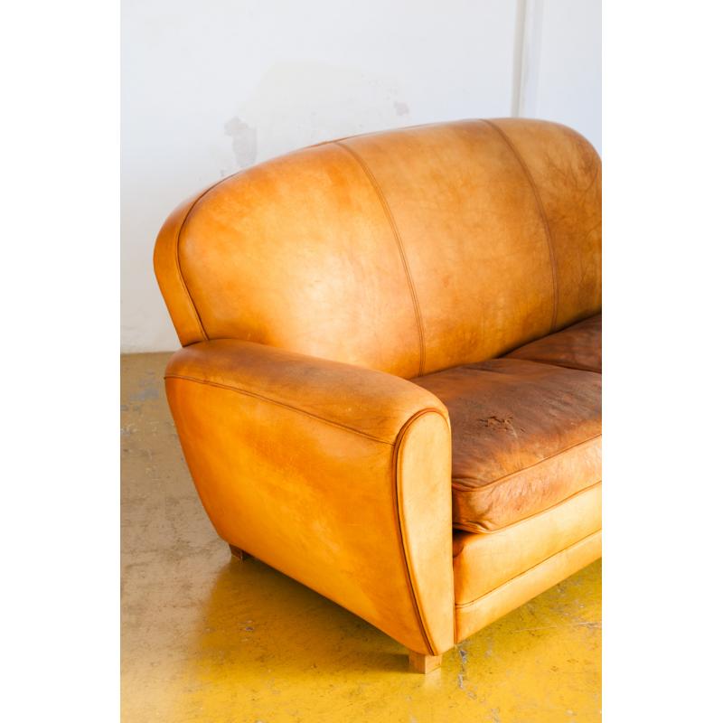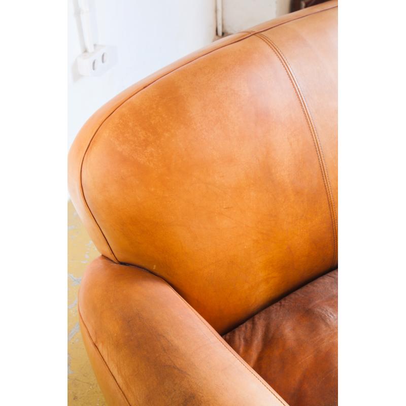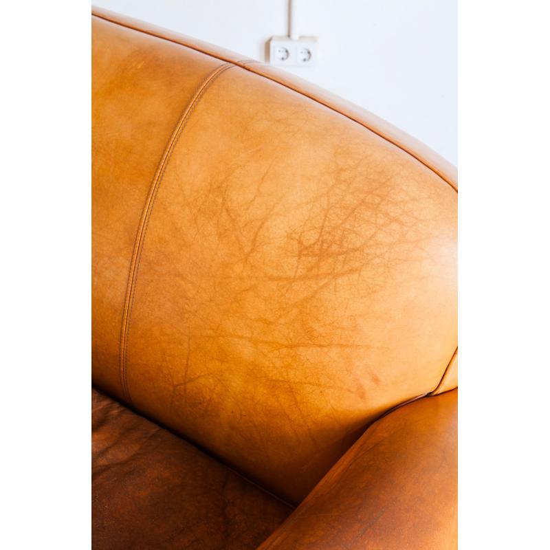 Sofá de cuero tipo "Club" color marrón con una estupenda pátina. Muy buen estado general a excepción de los asientos donde el uso es más acentuado. Ver fotos de detalle ya que forman parte de la descripción del artículo. Cualquier defecto a señalar se muestra en las mismas.