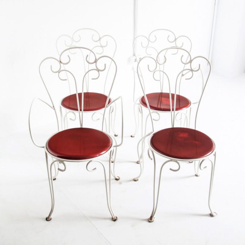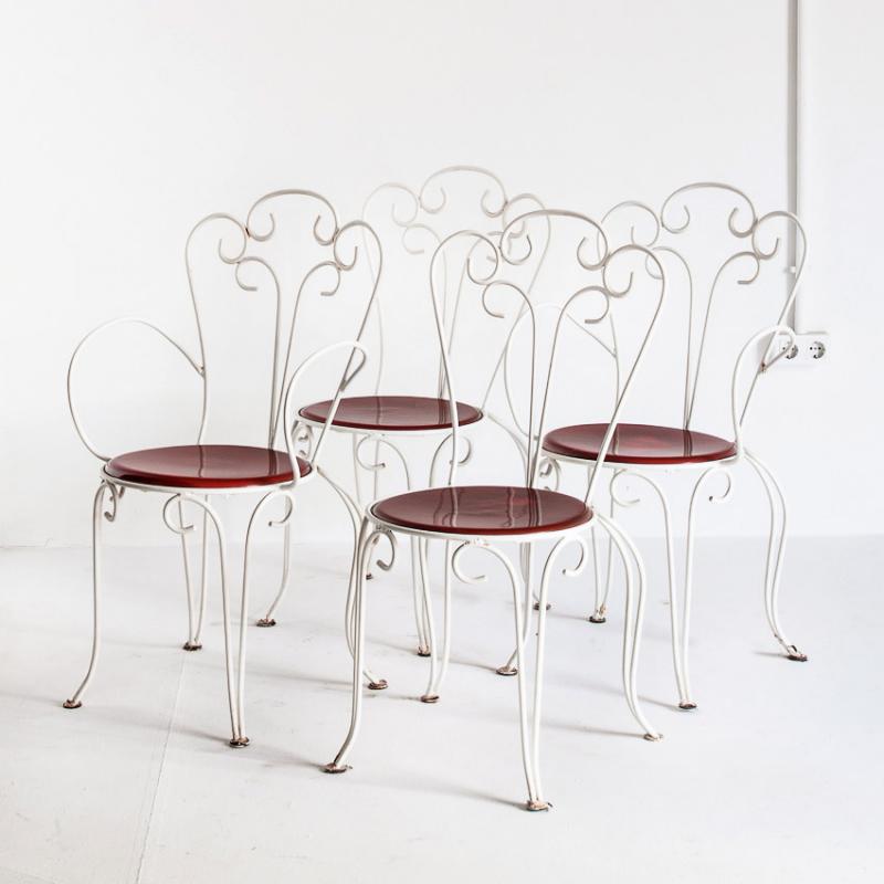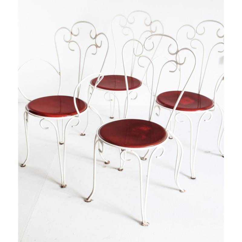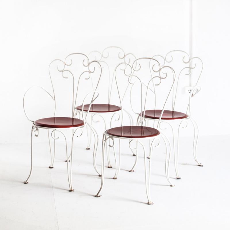 Conjunto de 4 sillas de jardín. Hierro y fibra de vidrio. Francia, años 70.