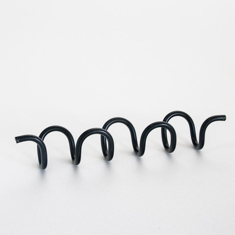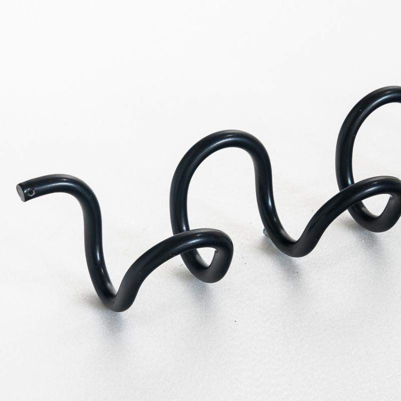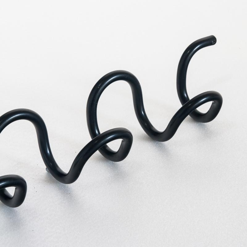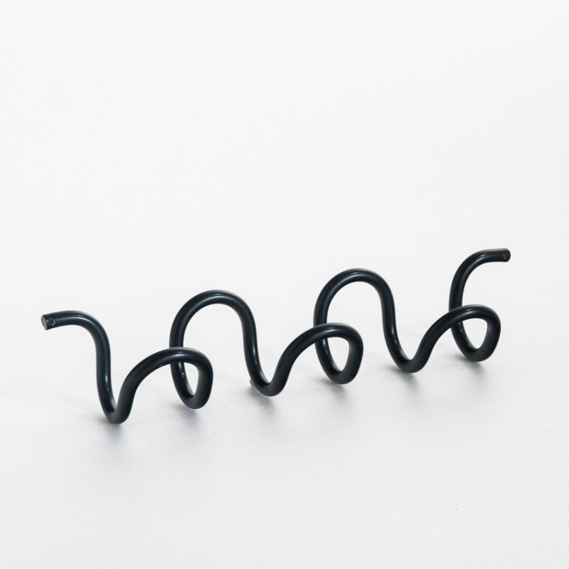 Perchero de pared en espiral. Aluminio pintado en negro. Diseño de Ferrer y Blasco para Grop. premio Delta Silver Award Adi-Fad en 1970. España, años 70.