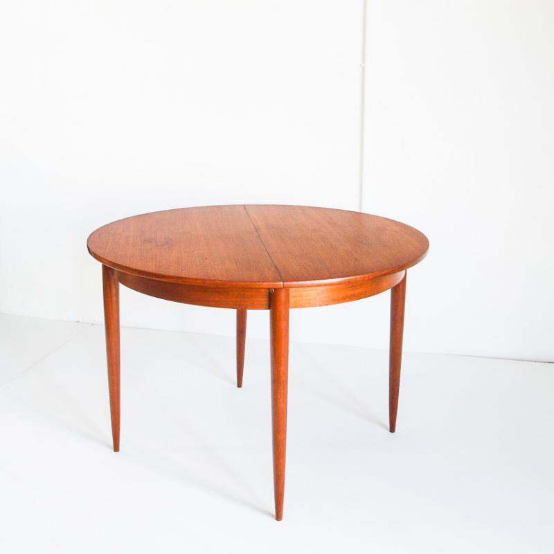 Mesa de comedor. Hecha en madera de teca. Con una extensión. De estilo nórdico. Francia, años 60.