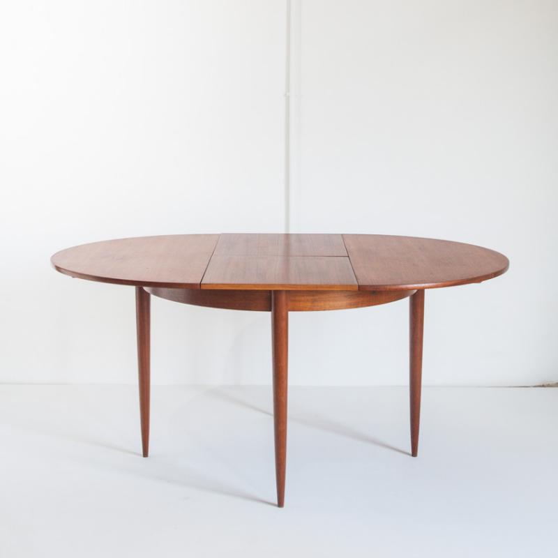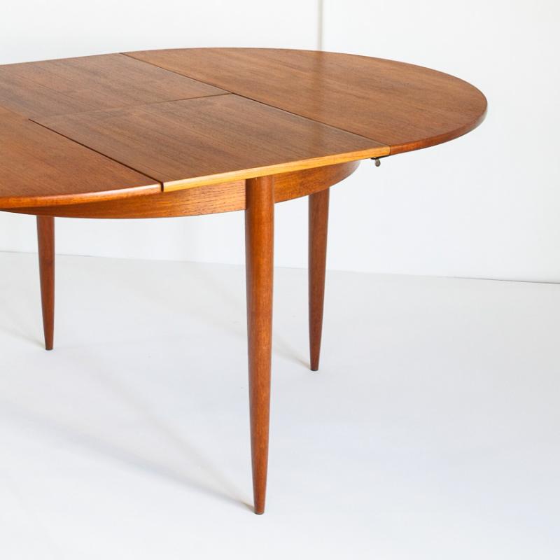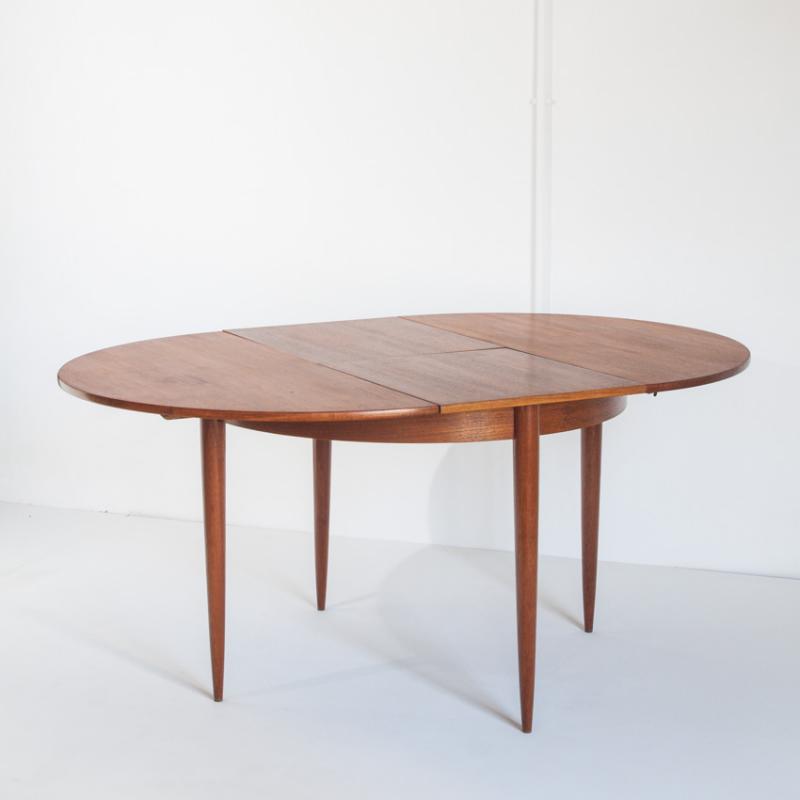 Mesa de teca estilo escandinavo. Con una extensión. Francia, años 60
