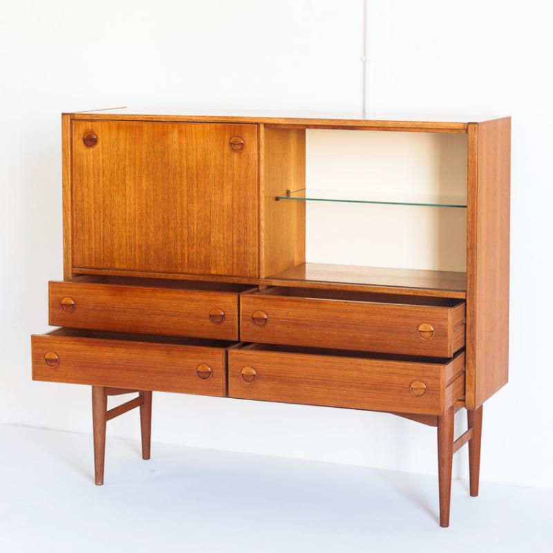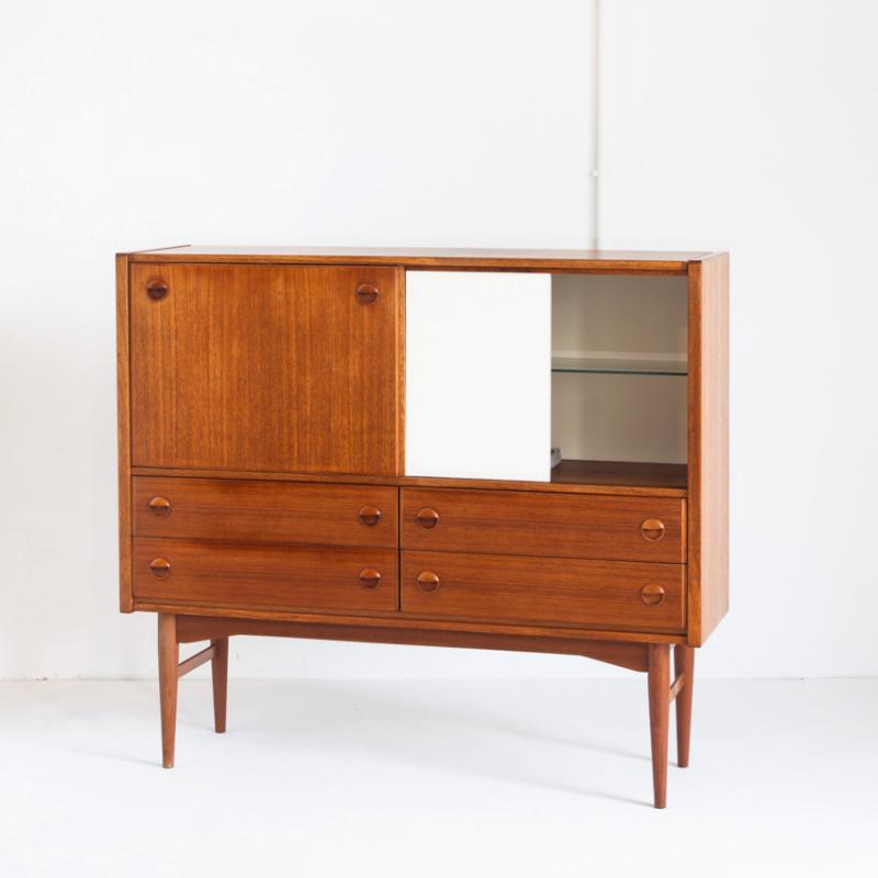 Mueble aparador en madera de teca. Con luz tipo linestra. De estilo escandinavo. Francia, años 60.