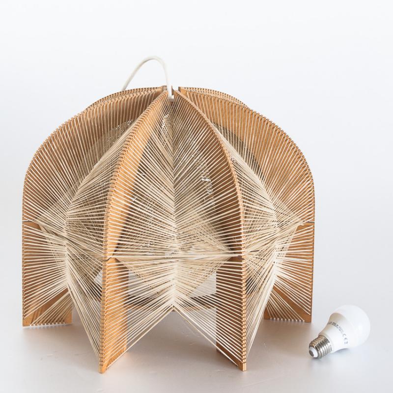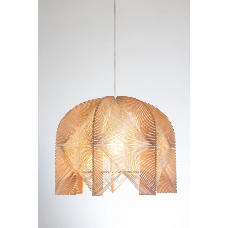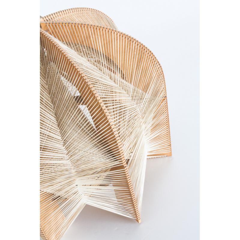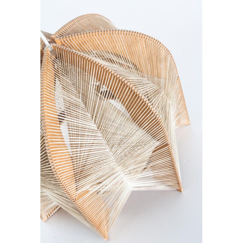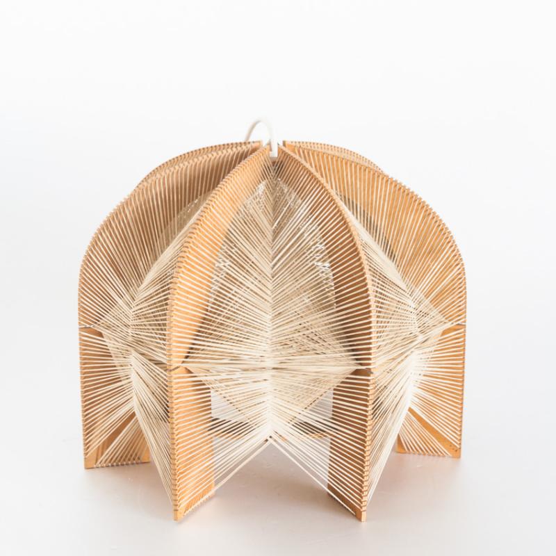 Lámpara de techo estilo nórdico de gran tamaño. Madera y fibras vegetales. Francia, años 60.
