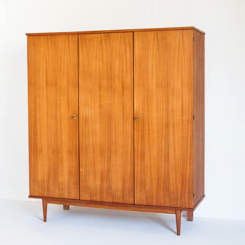 Armario ropero 3 puertas. Placaje de teca.Con espejo. Francia, años 60