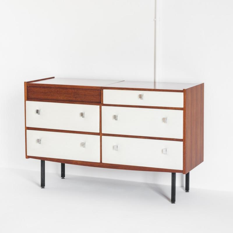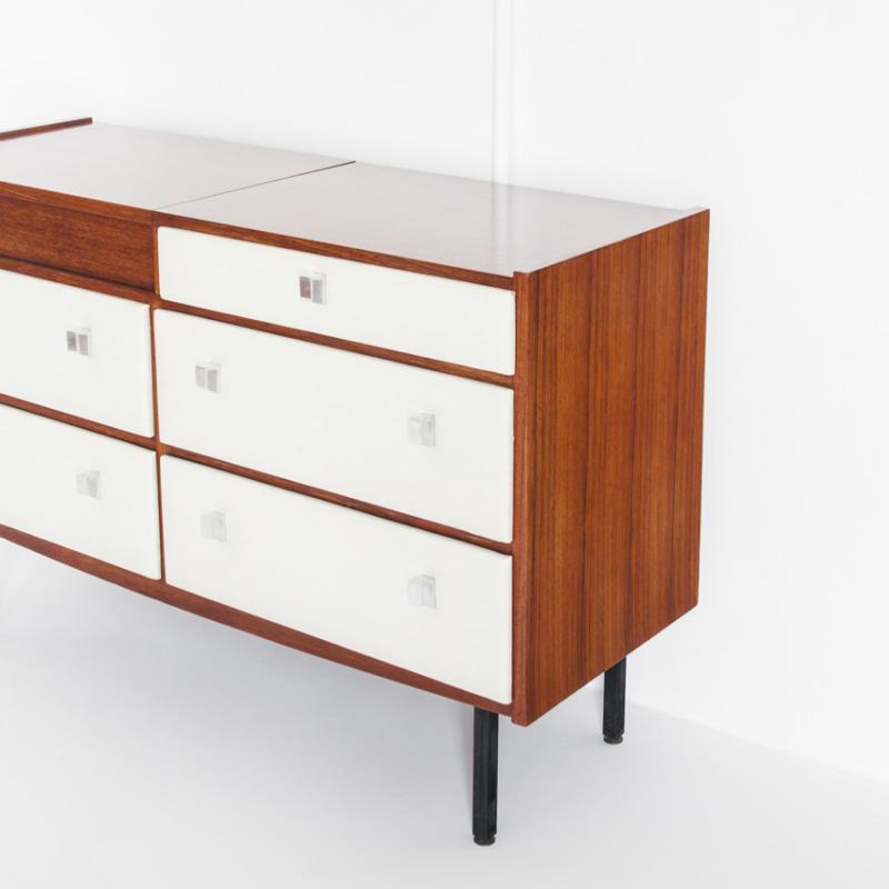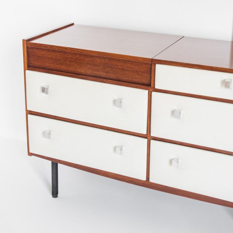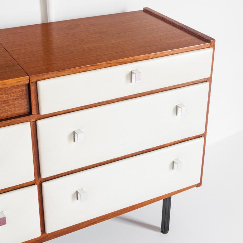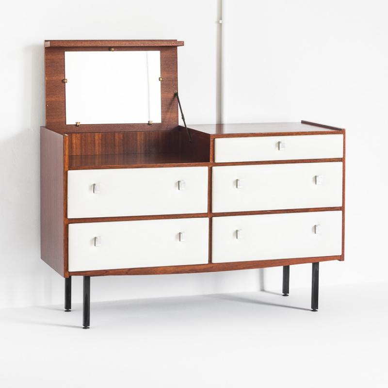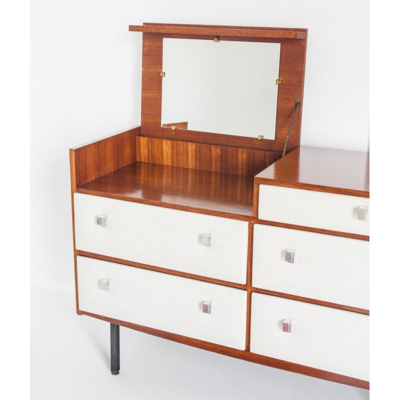 Cómoda con tocador abatible. Madera de teca. Francia, años 60.