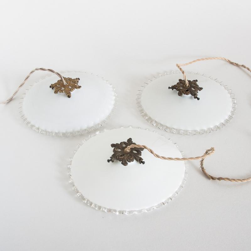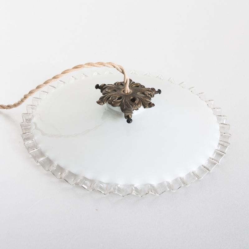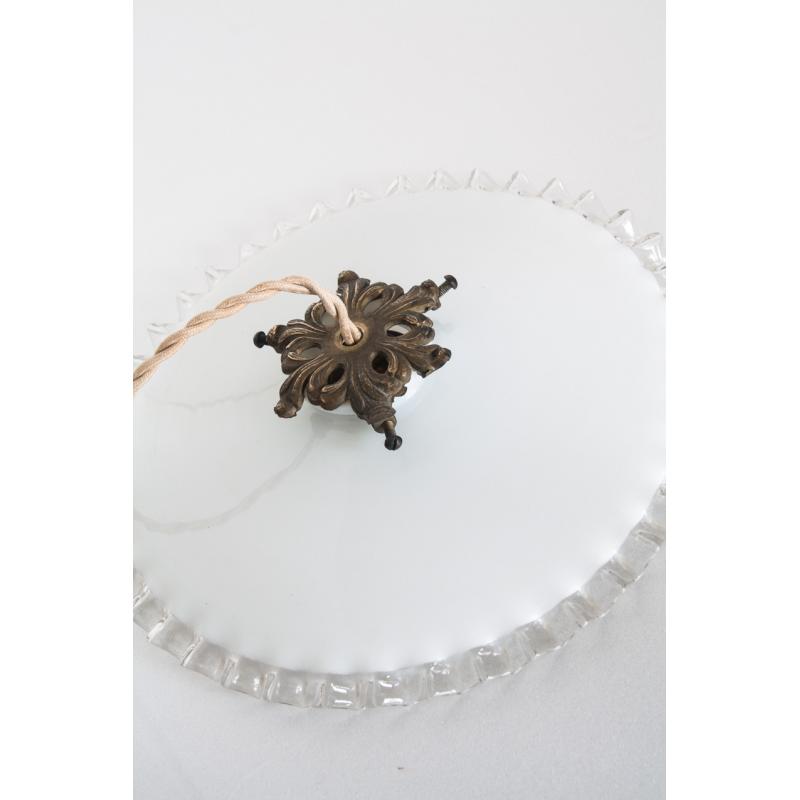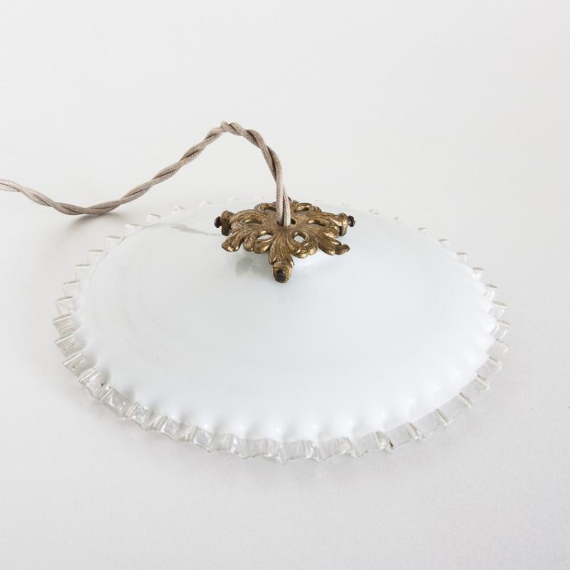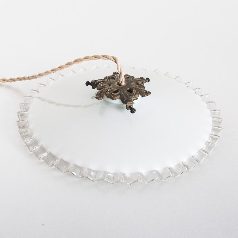 Lámpara de techo de cristal opalino. Francia, años 50. Precio por unidad. Tres disponibles.