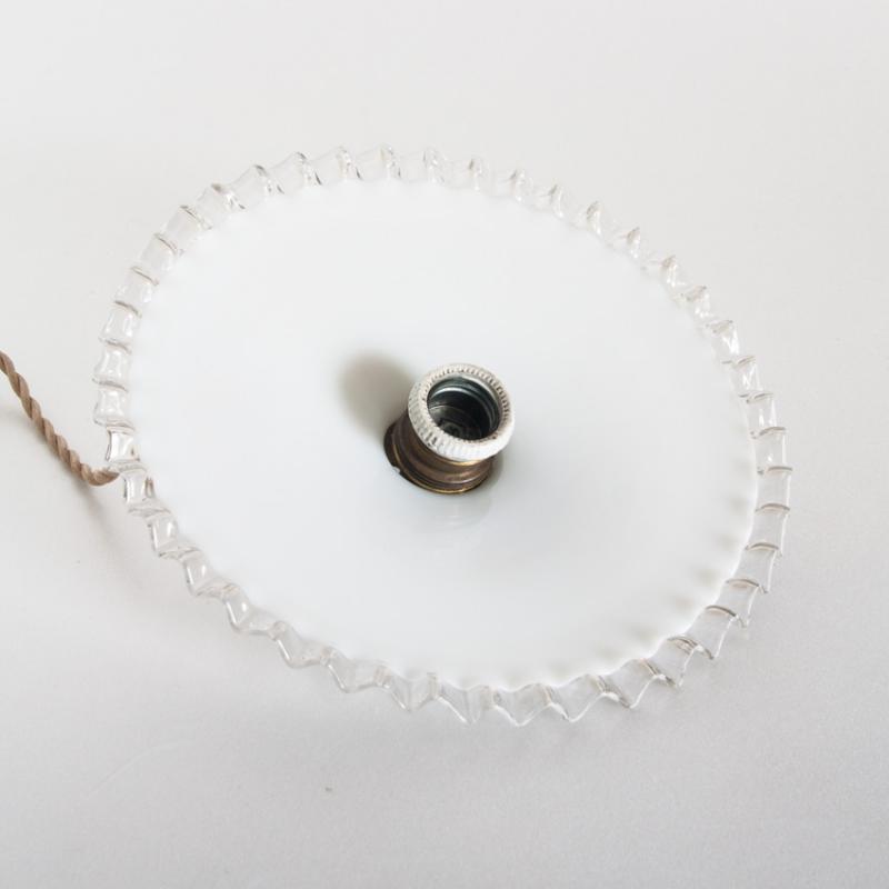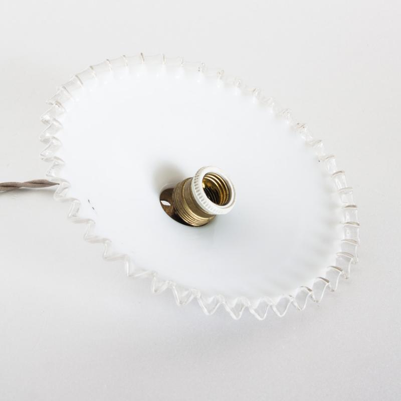 Lámpara de techo de cristal opalino. Con portalámparas para bombilla E-27. Francia, años 50. Precio por unidad. Tres disponibles.