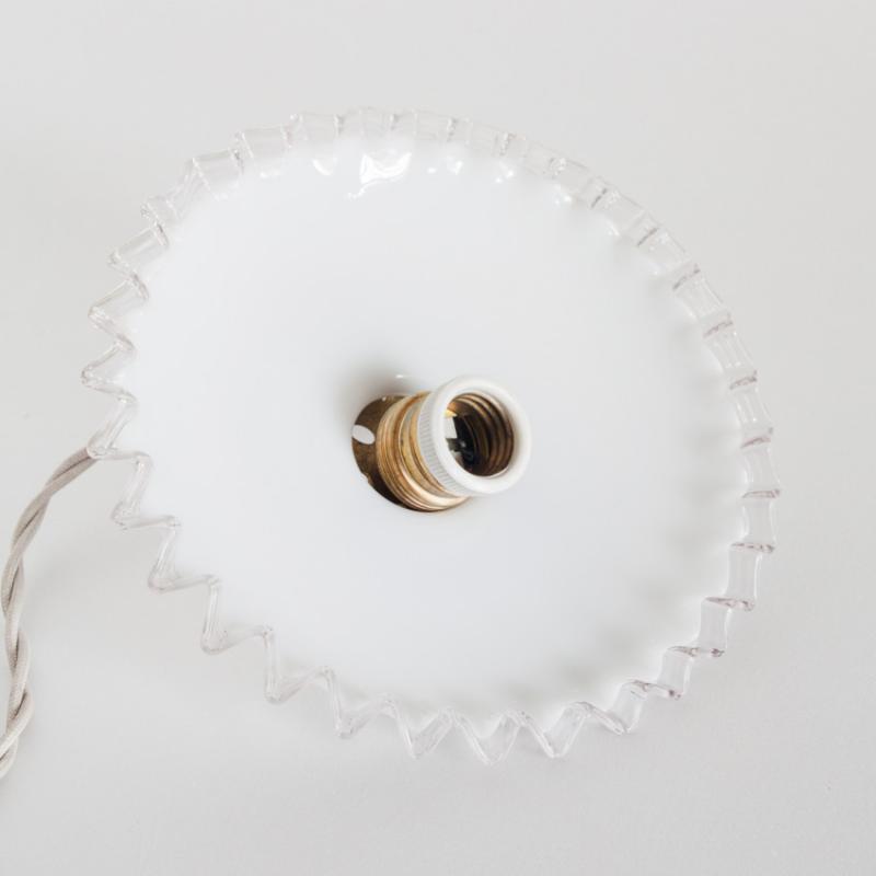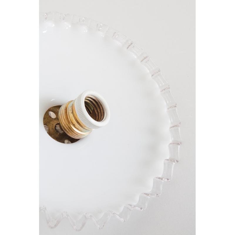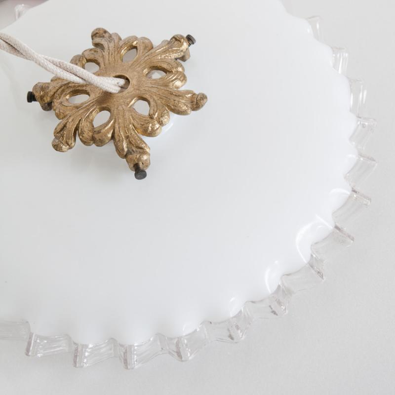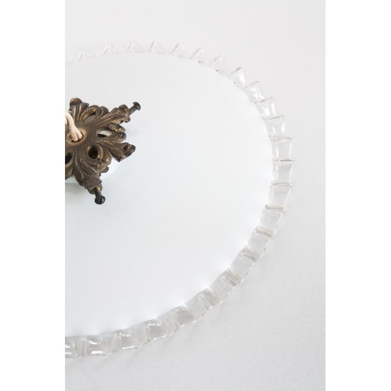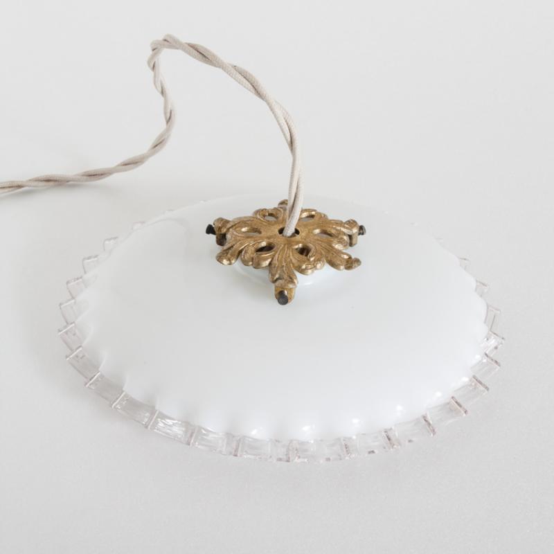 Lámpara de techo de cristal opalino. Con portalámparas para bombilla E-27. Francia, años 50.