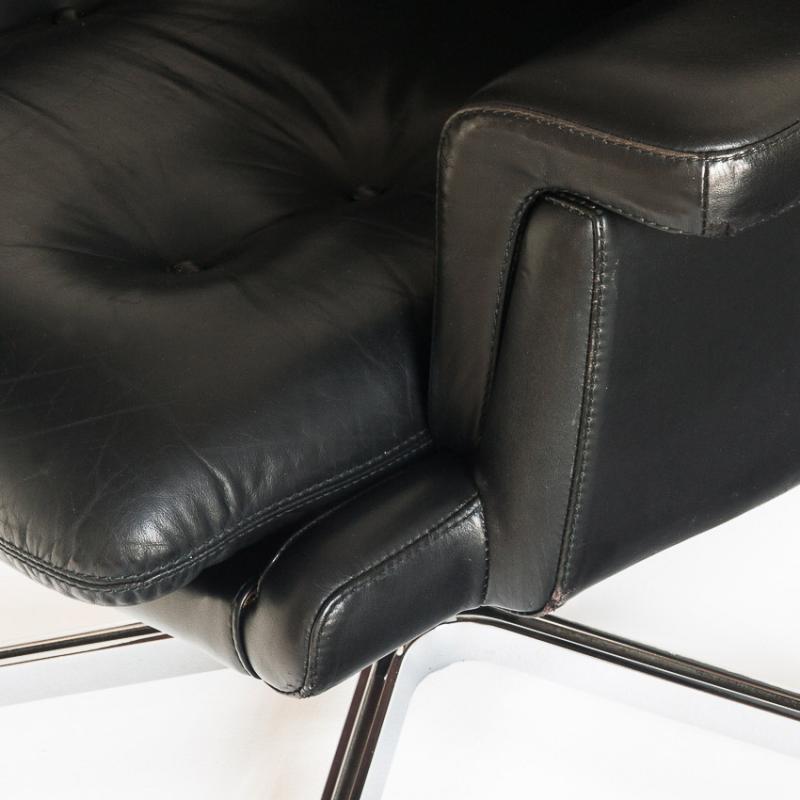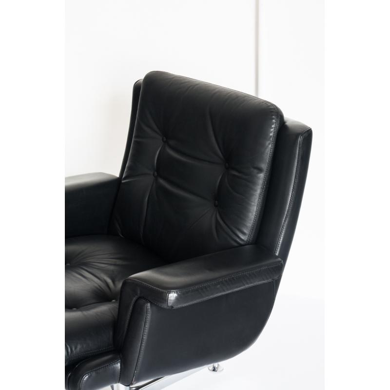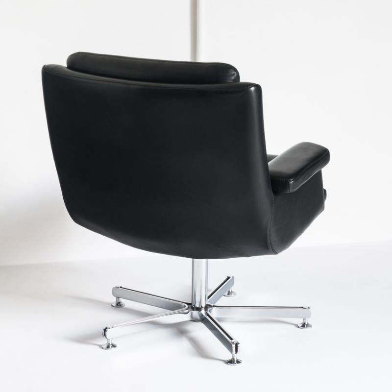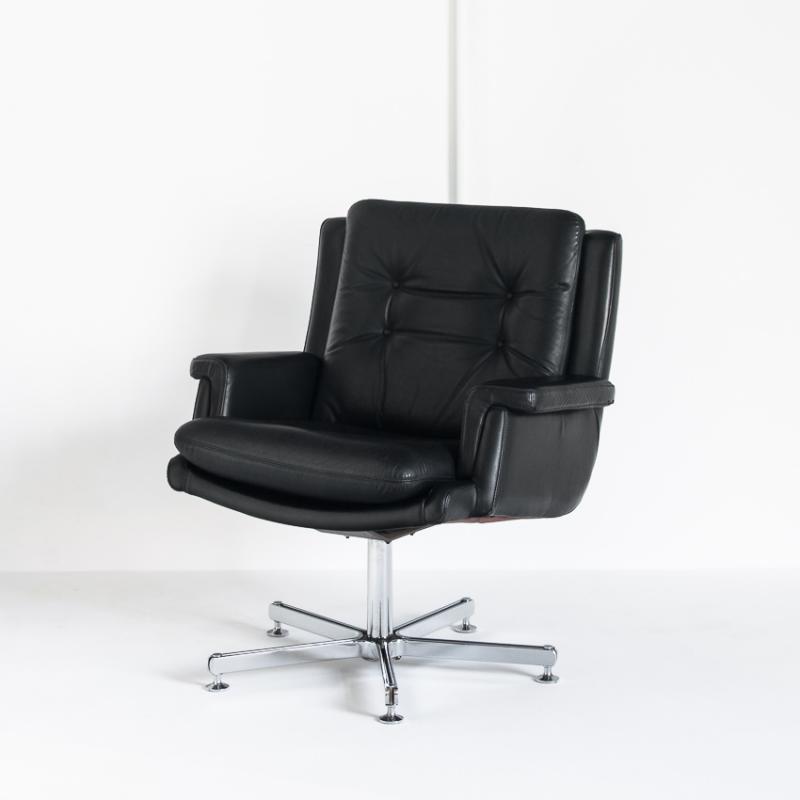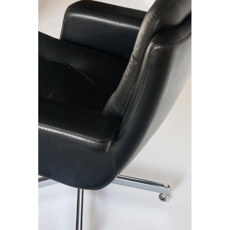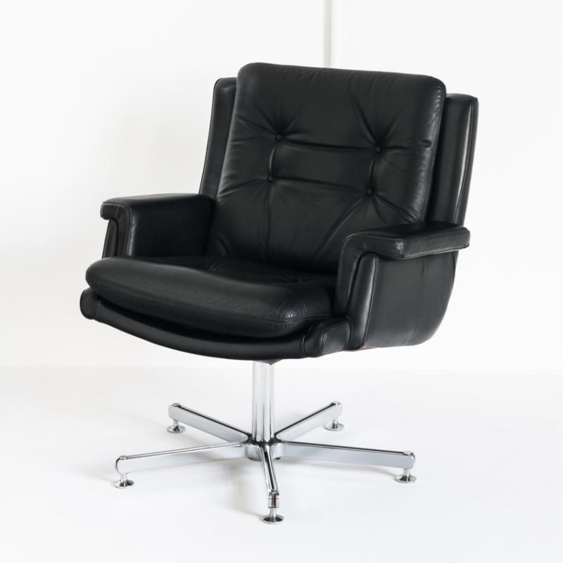 Butaca de cuero. Giratoria. Pie cromado. Francia, años 60
