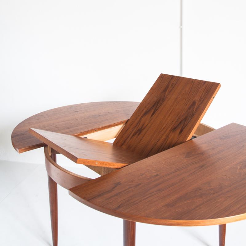 Mesa de teca estilo escandinavo. Con una extensión. Francia, años 60