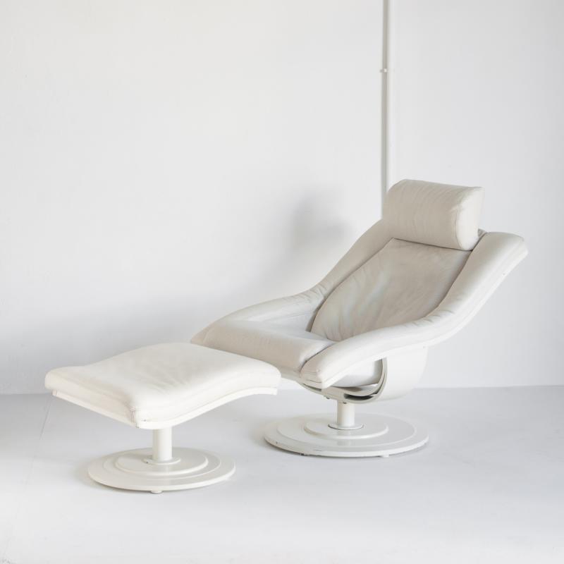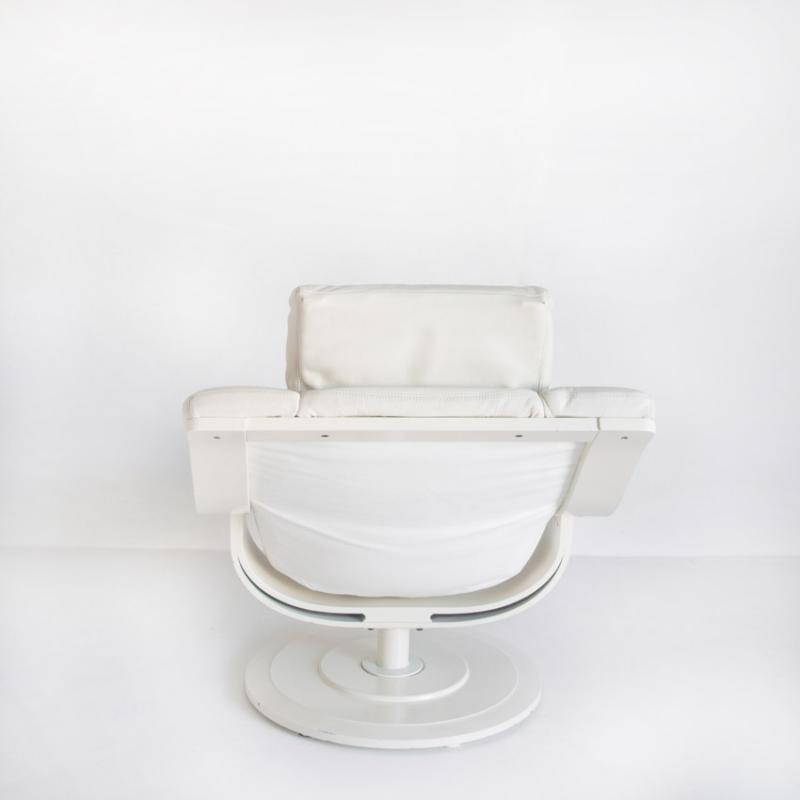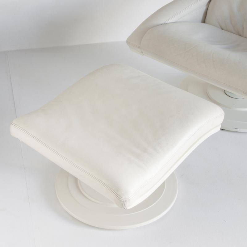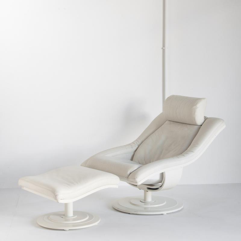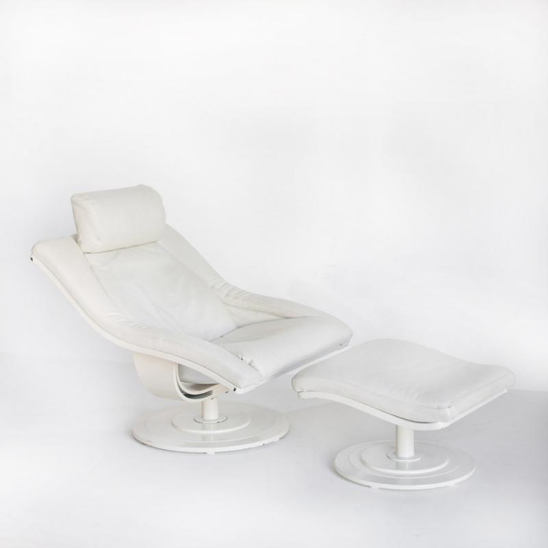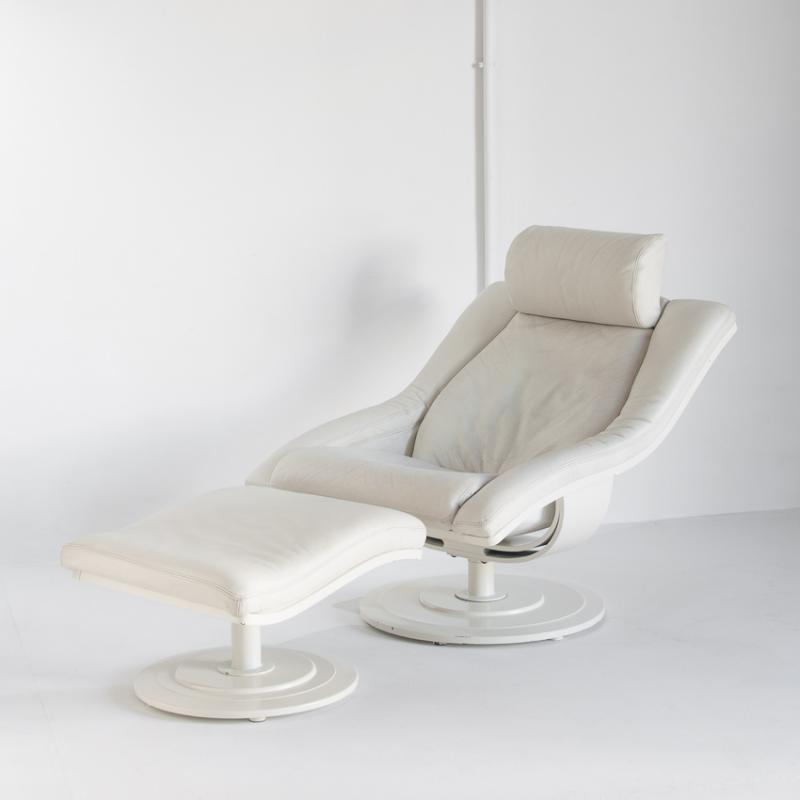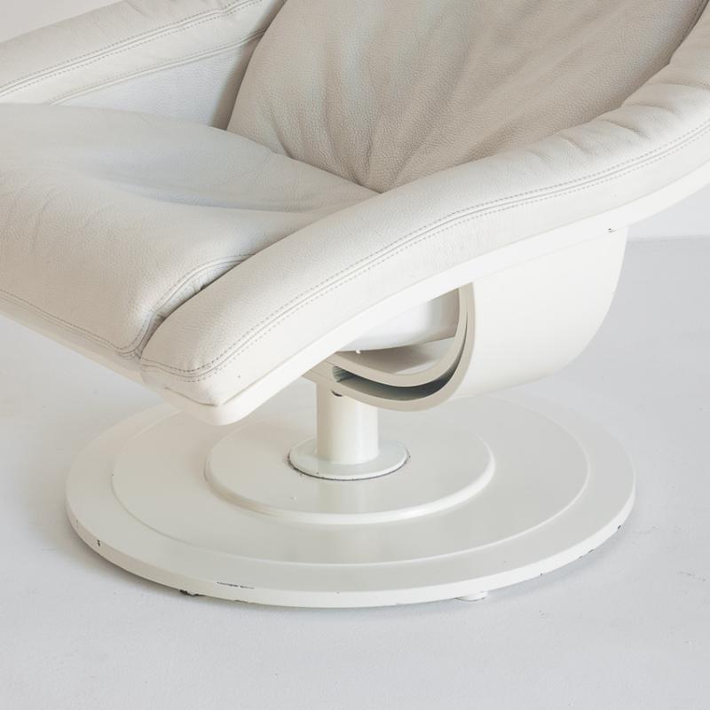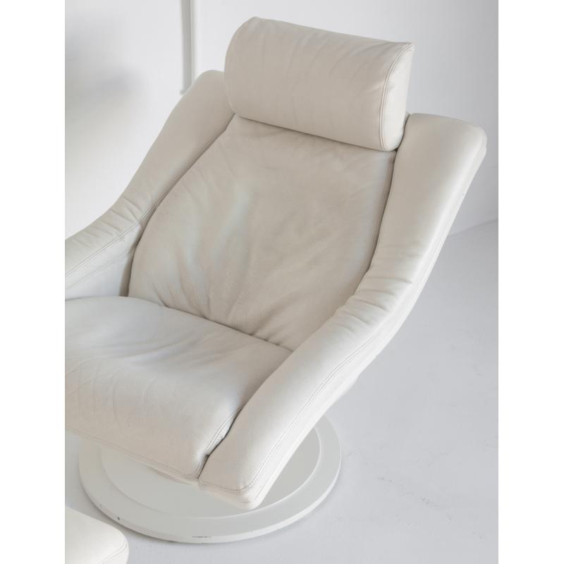 Butaca cuero giratoria con otoman. Suecia años 80, Nelo Möbel.