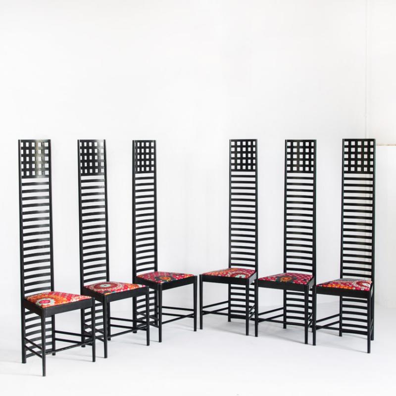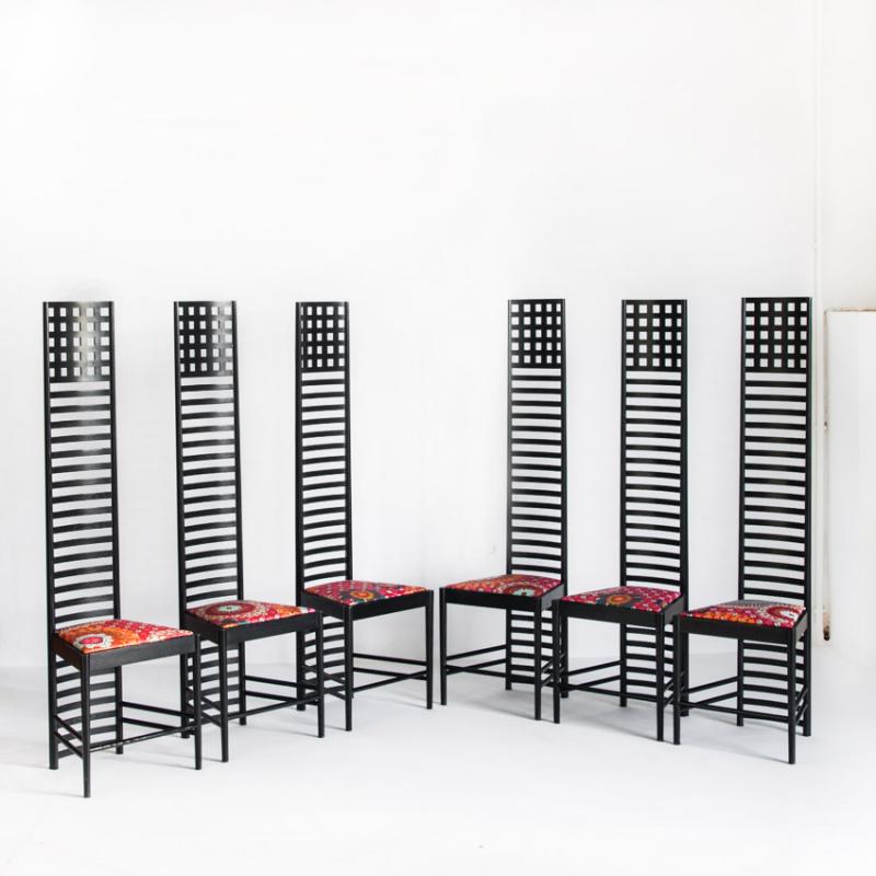 Conjunto de 6 sillas 292 Hill House 1 diseño de Charles Rennie Mackintosh para Cassina. Italia, años 90.