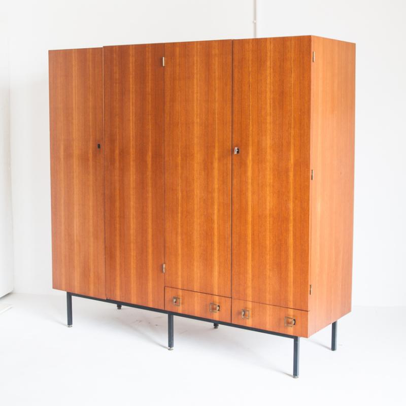 Armario ropero cuatro puertas de teca. Midcentury. Francia, años 60