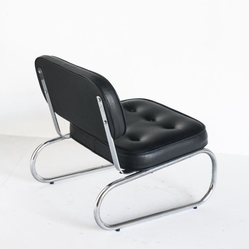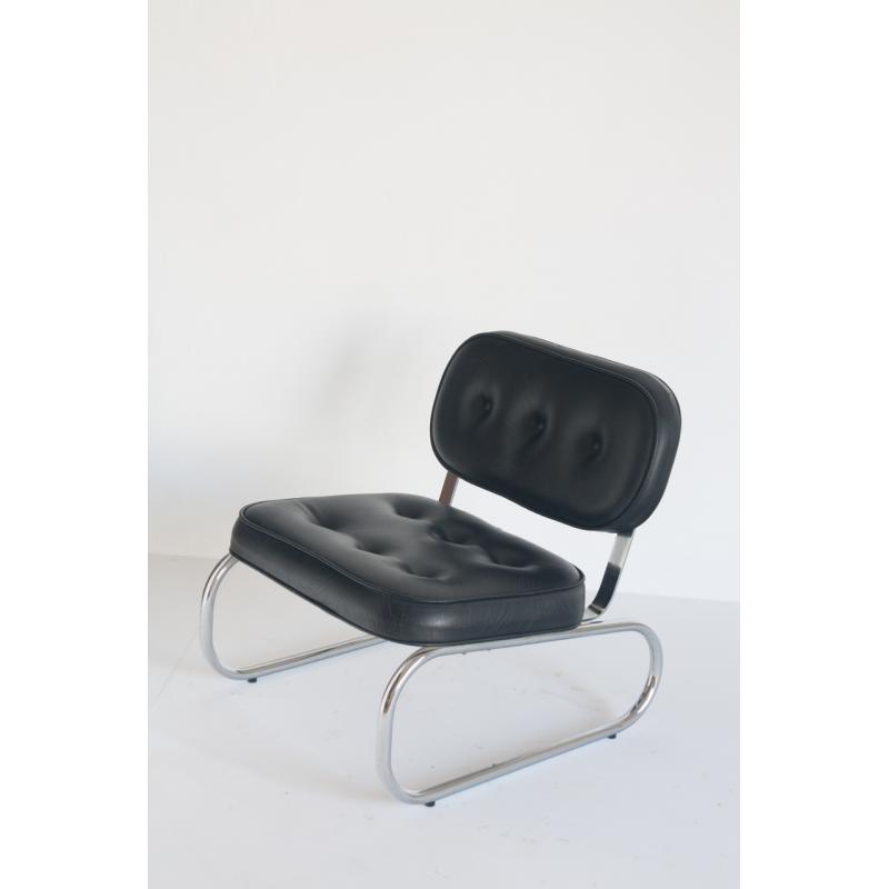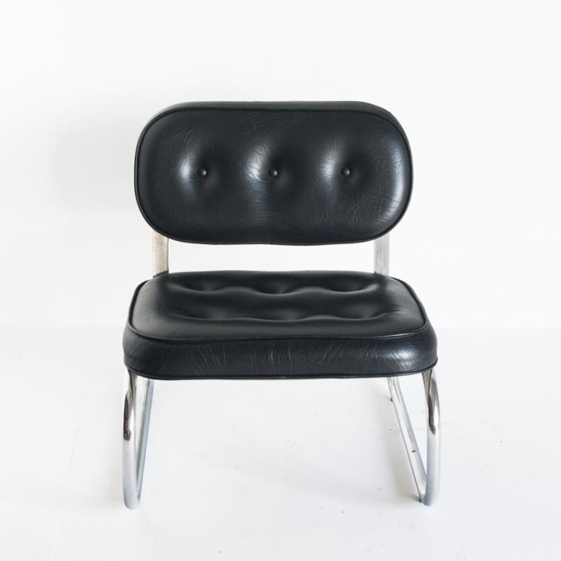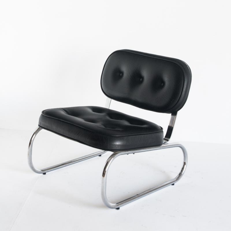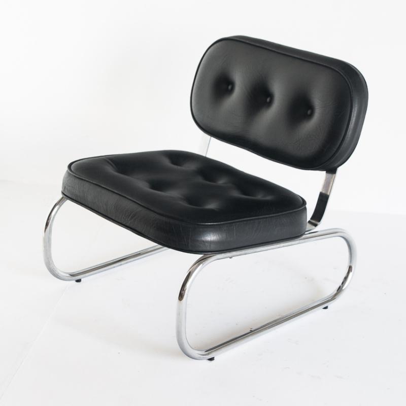 Butaca baja vintage. Metal cromado y eskai - España, años 70.