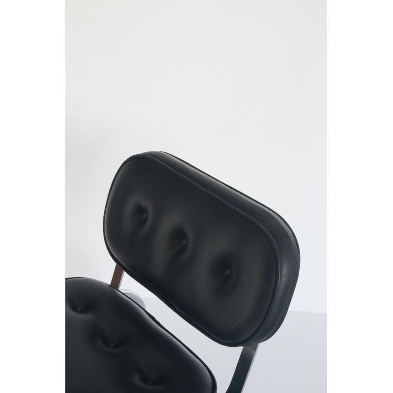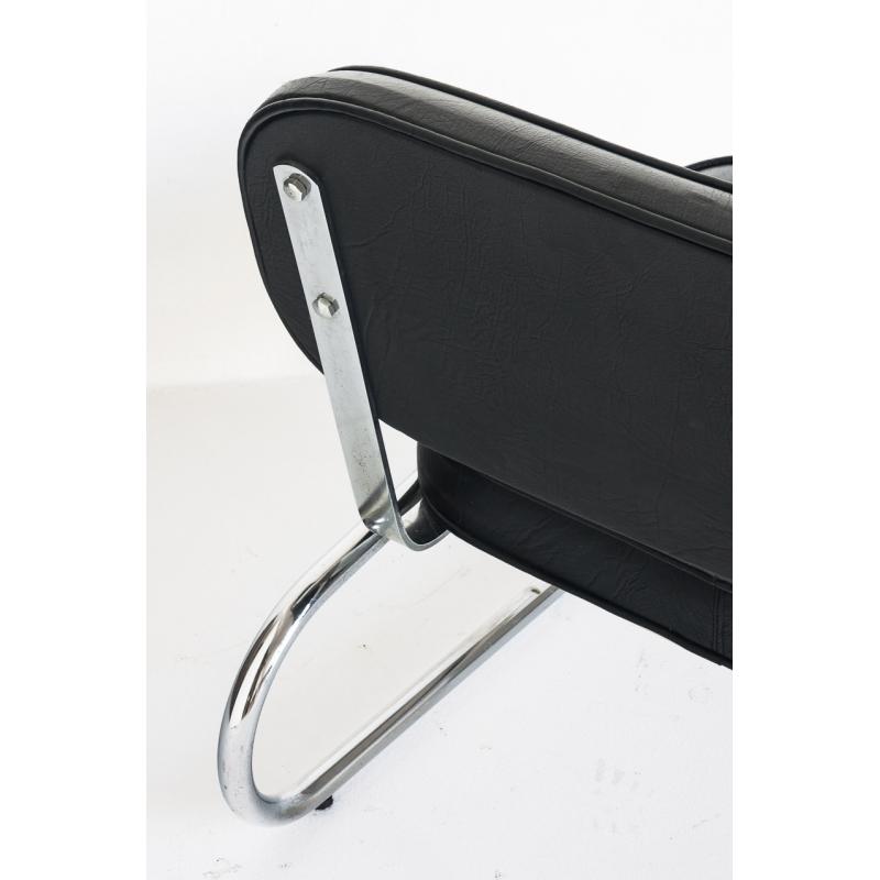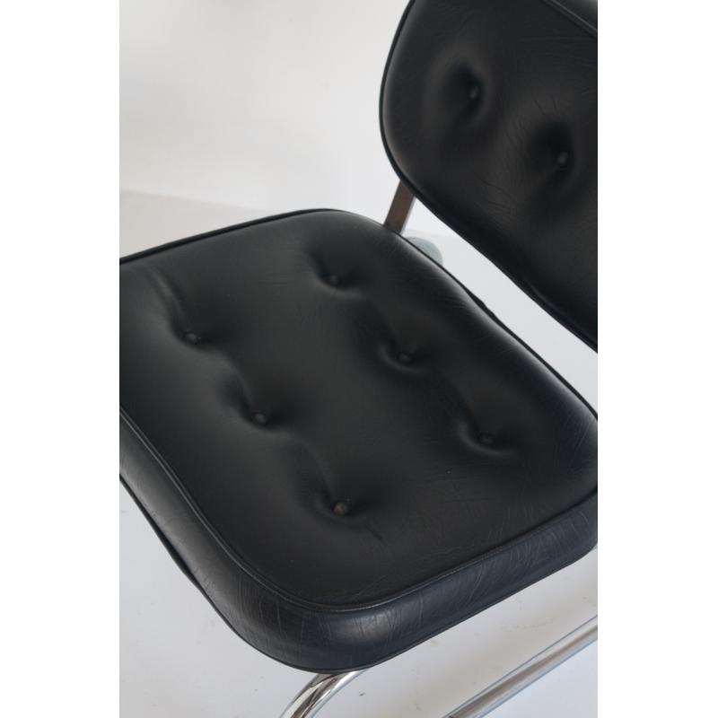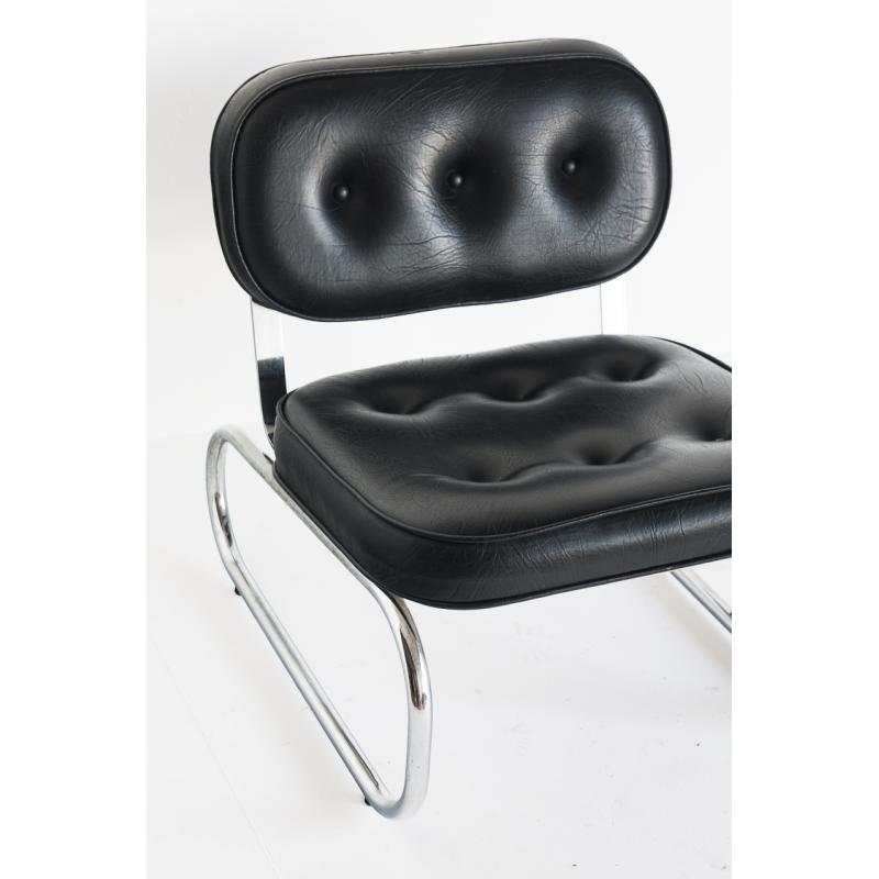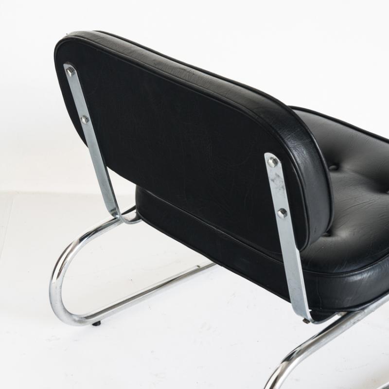 Butaca baja vintage. Metal cromado y eskai - España, años 70.