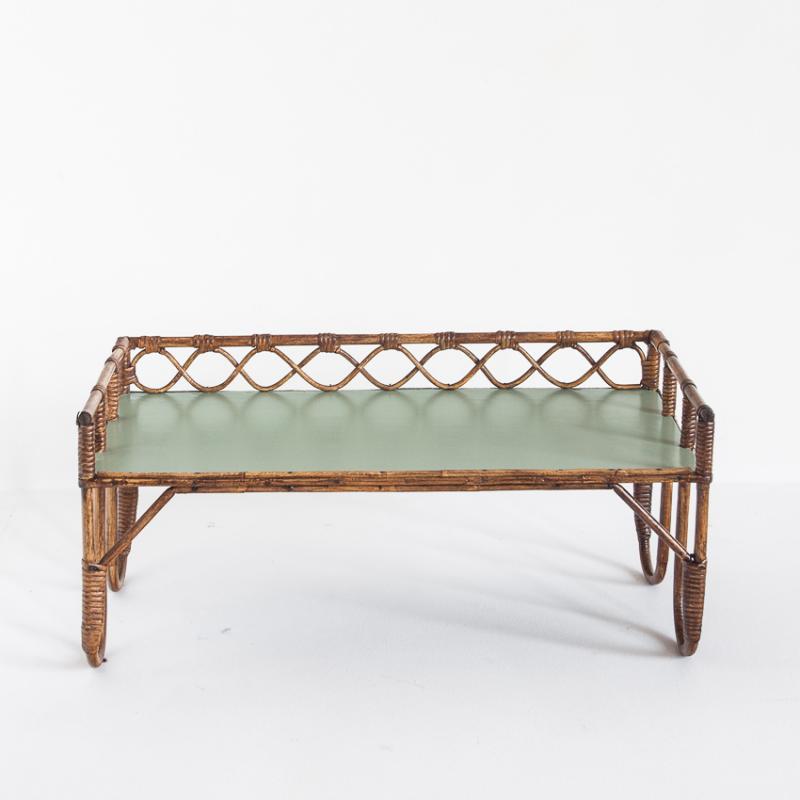 Mesita auxiliar de caña vintage. Francia, años 60.