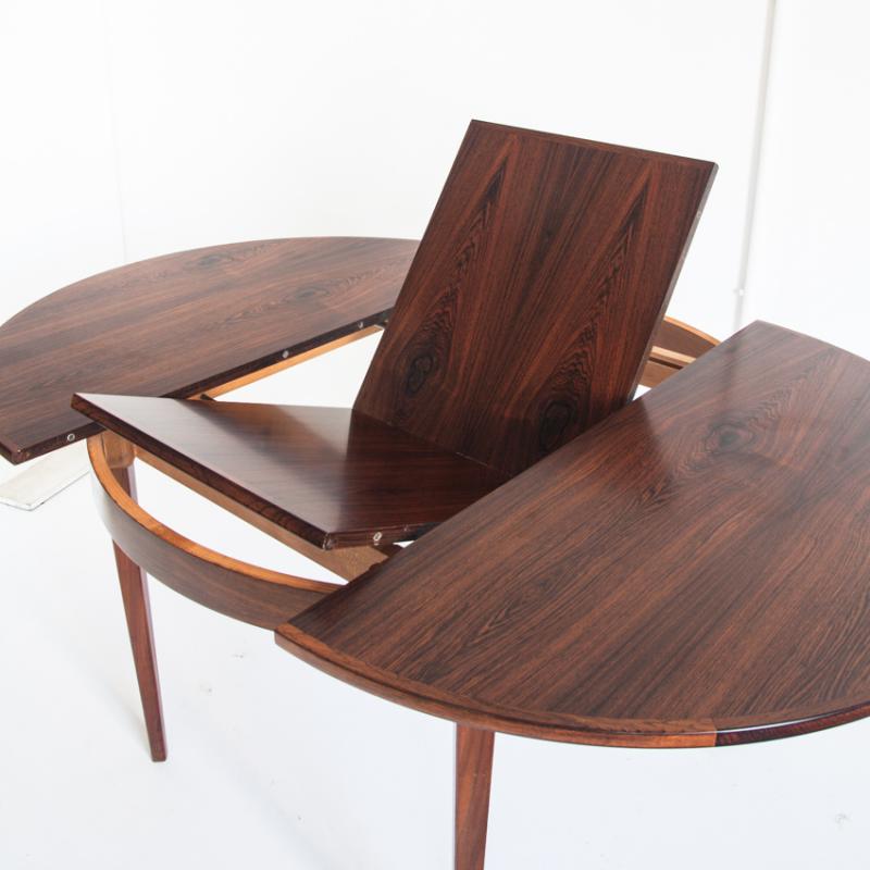 Mesa de estilo escandinavo. Con una extensión. Madera de palisandro. Francia, años 60