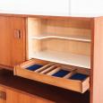 Puertas correderas y compartimento mueble bar con cajón interior con separadores.