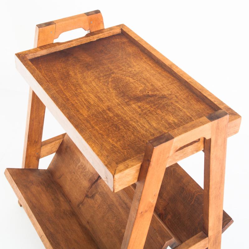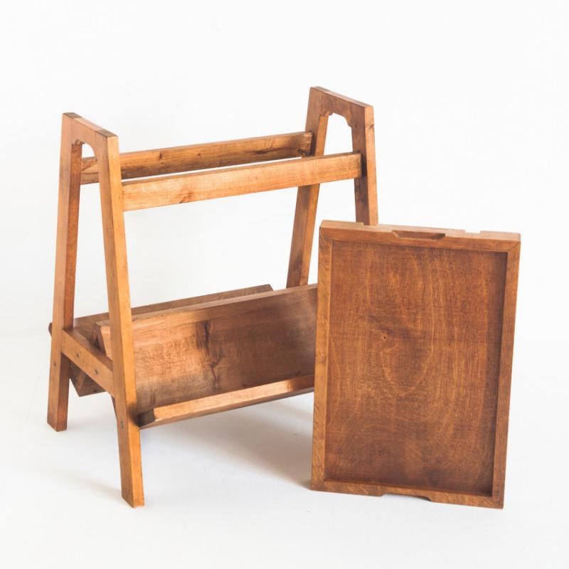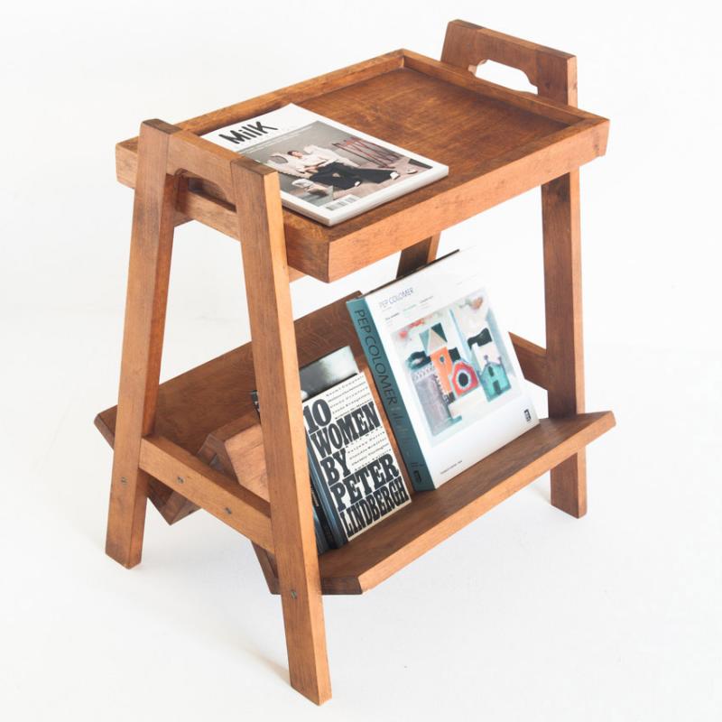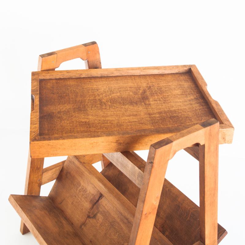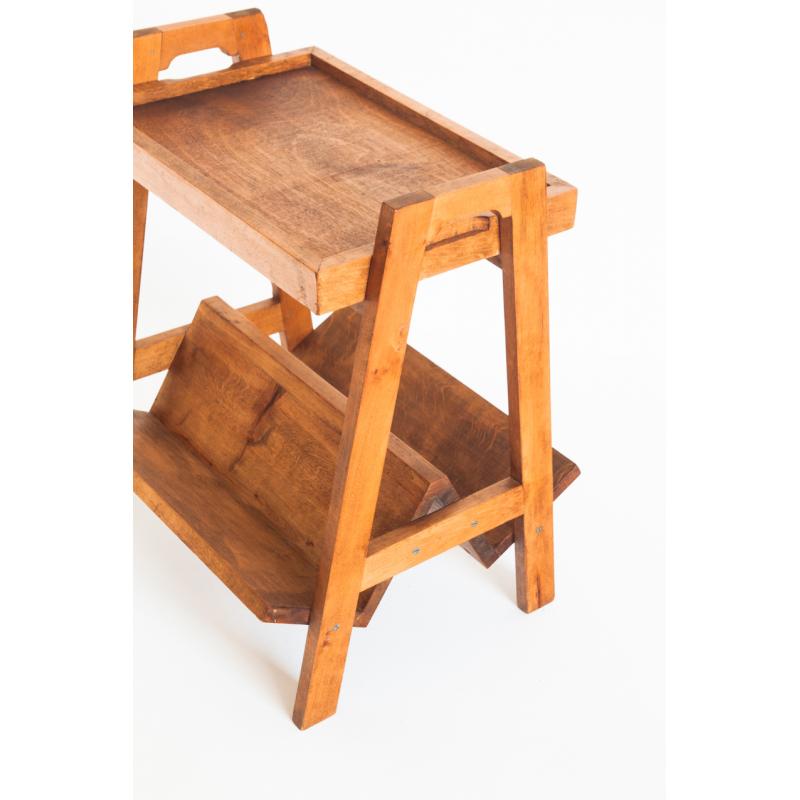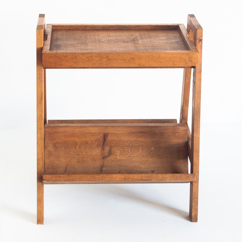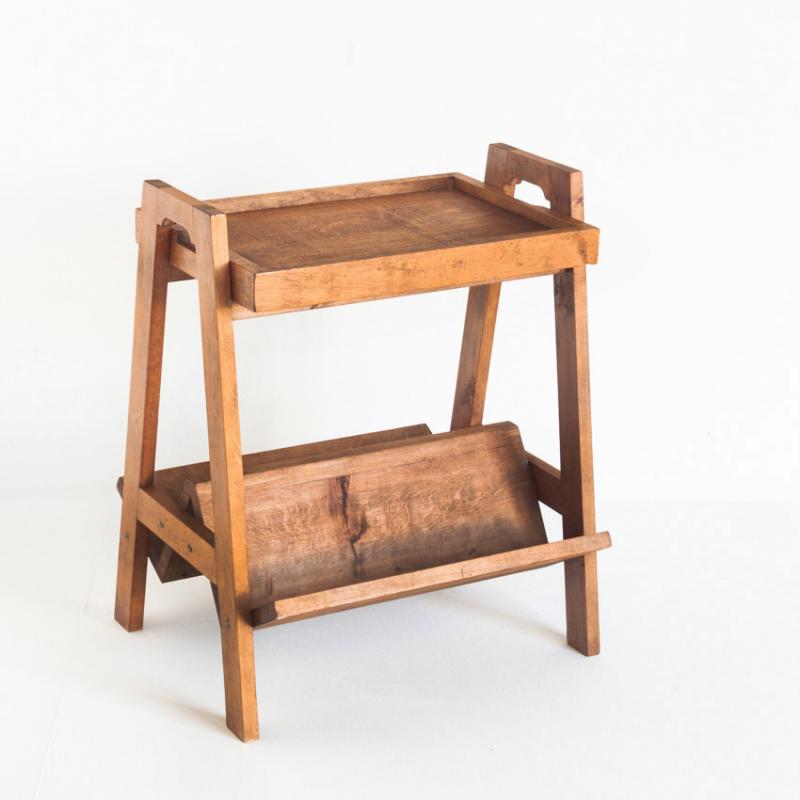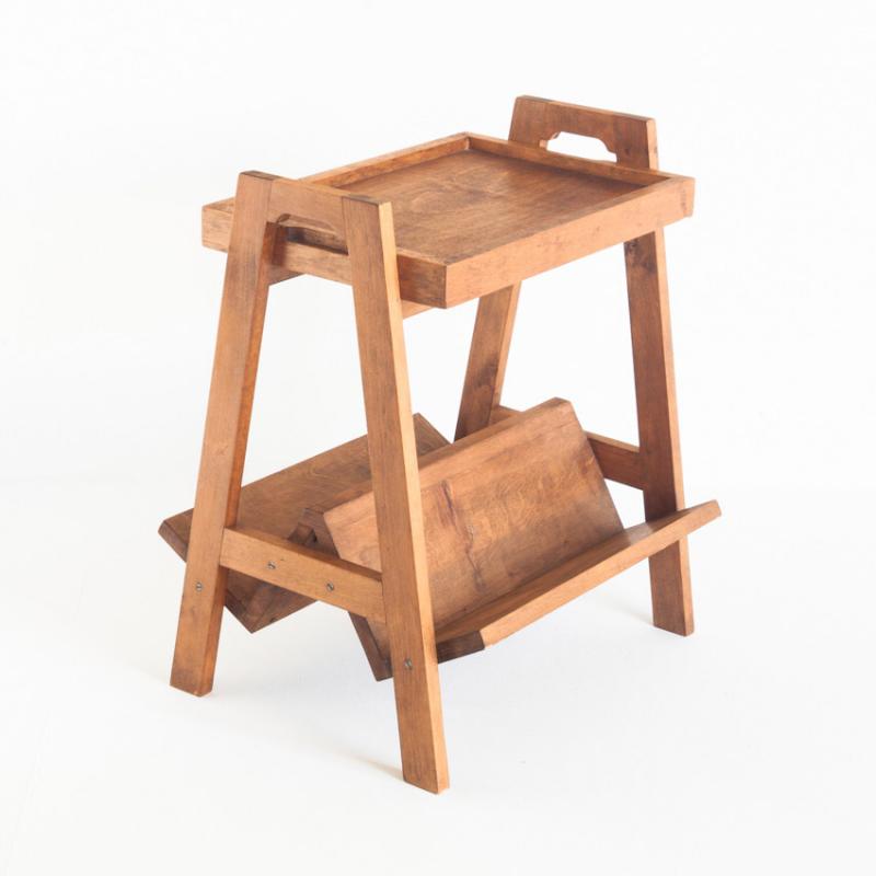 Mesa de teca con revistero y bandeja. Vintage. Francia, años 50.