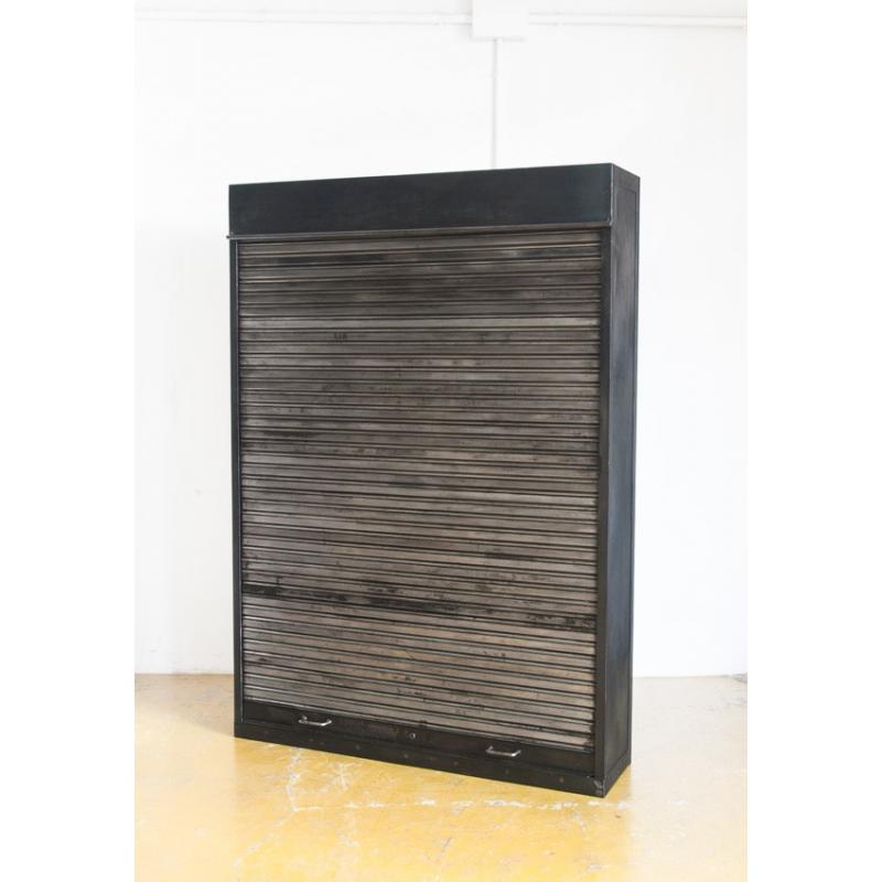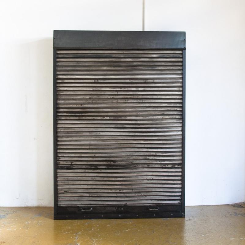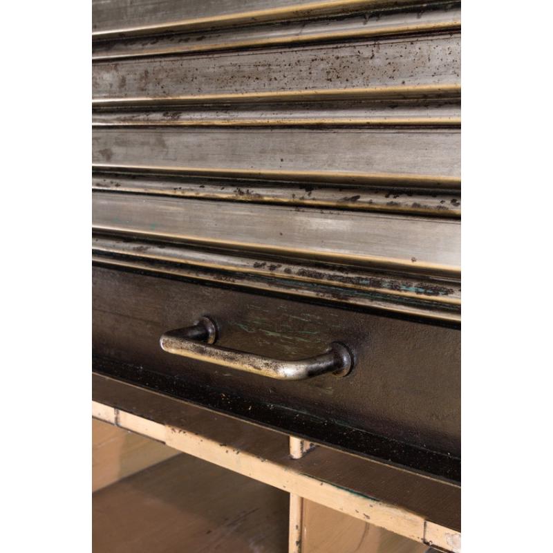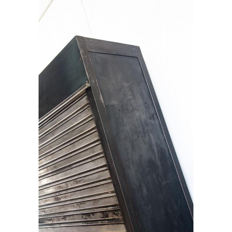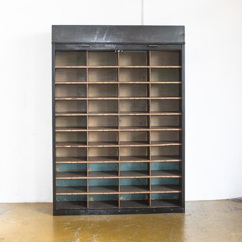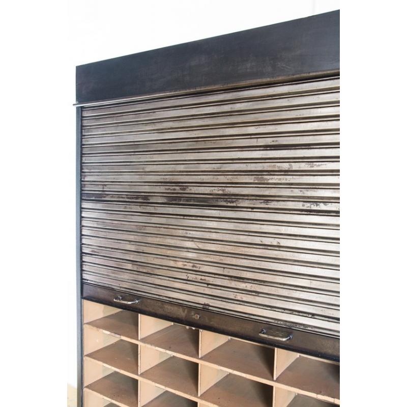 Mueble clasificador industrial. Con persiana. Procedente del servicio de correos francés. Hierro patinado al grafito y tratado antióxido. Francia, años 50.