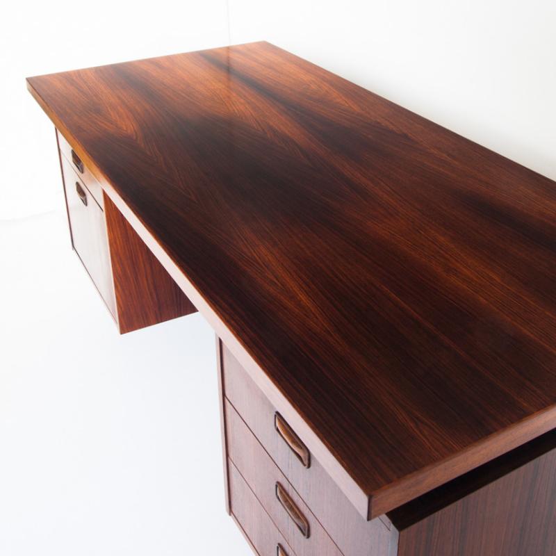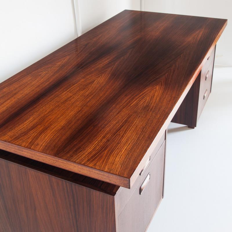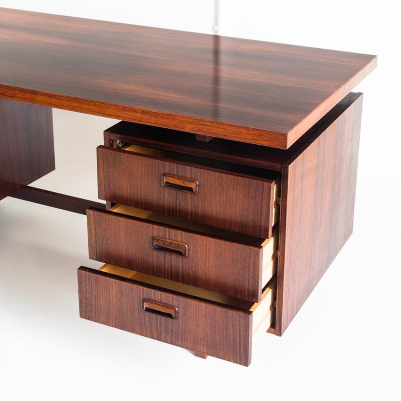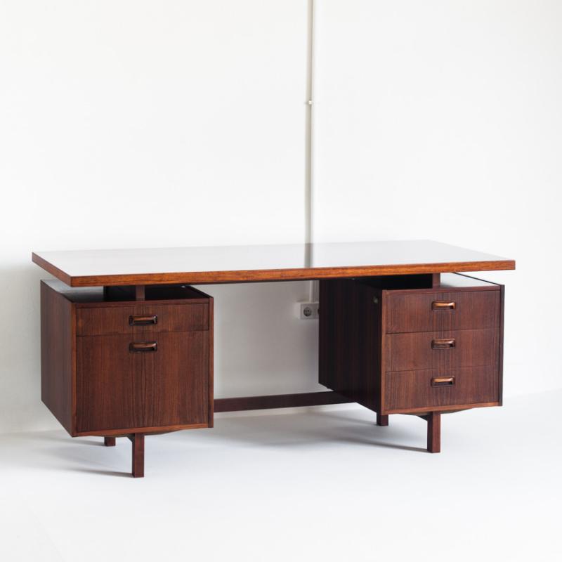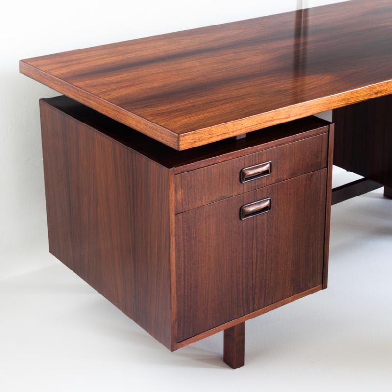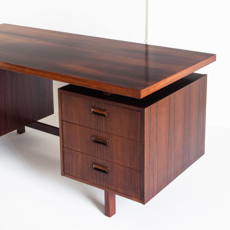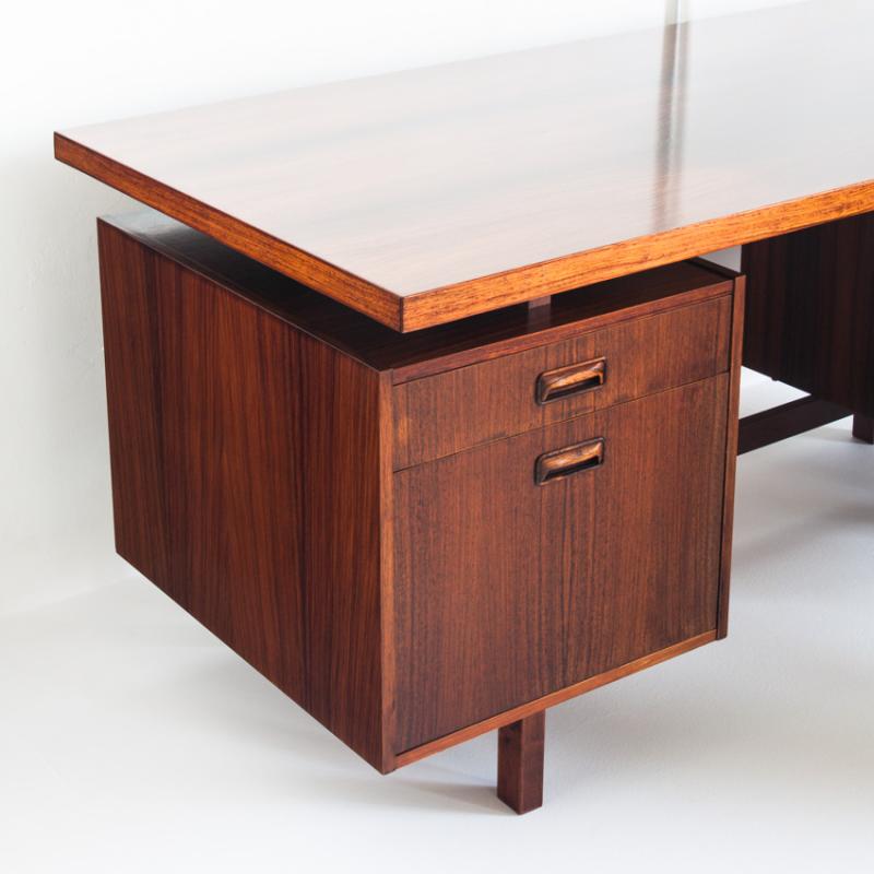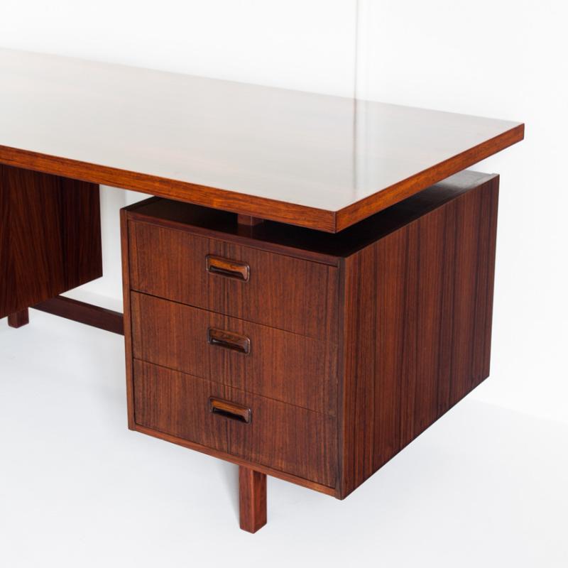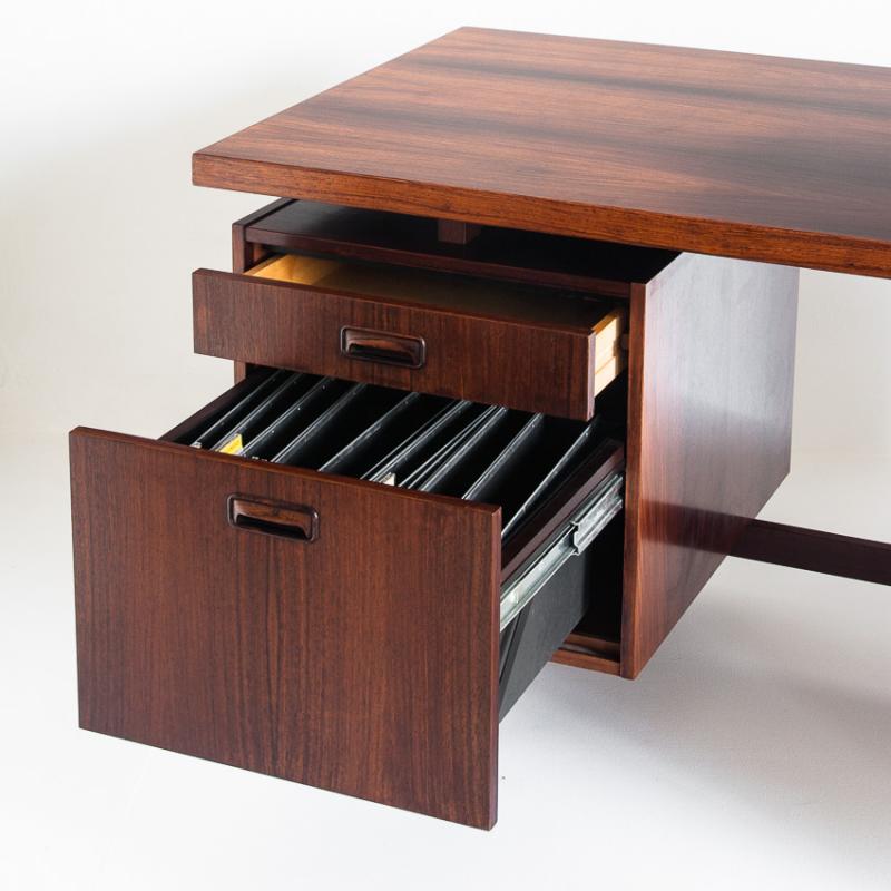 Escritorio de palisandro diseño de Kho Liang Ie para Fristho. 4 cajones sencillos y uno archivador. Sobre completamente restaurado. Holanda, años 60.