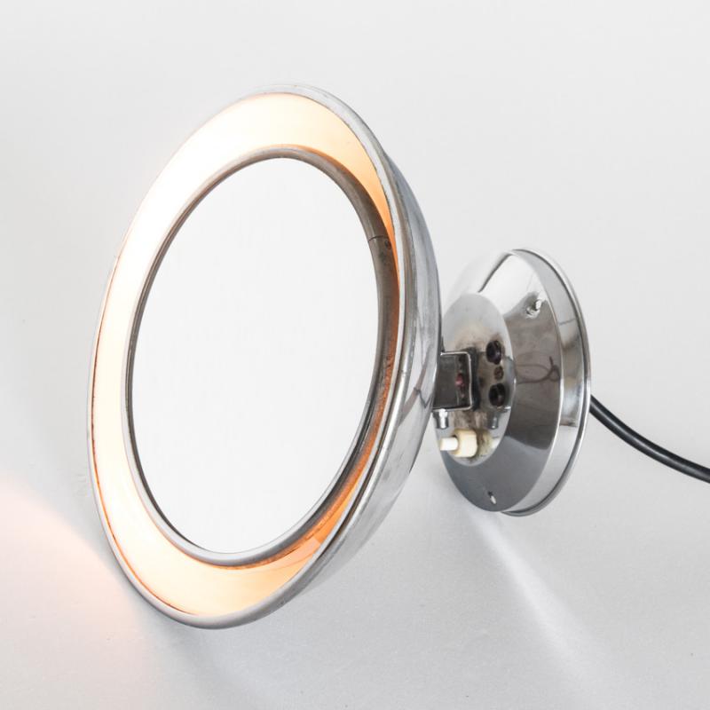 Espejo de baño magnificador con luz. Orientable. Hierro cromado. Francia, años 40.