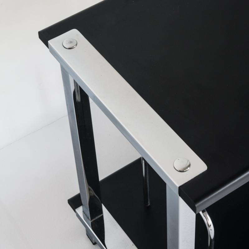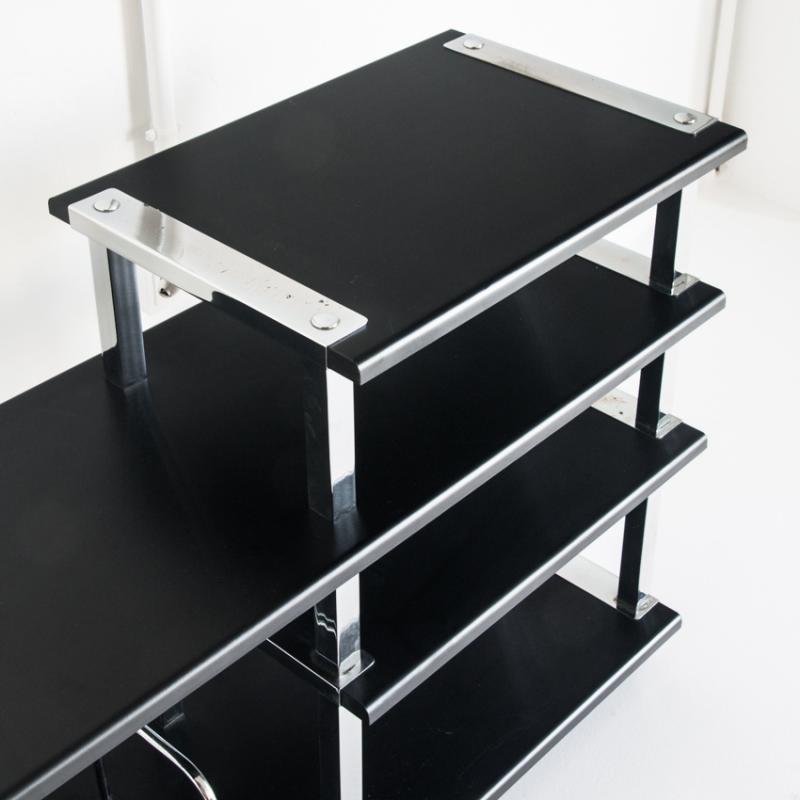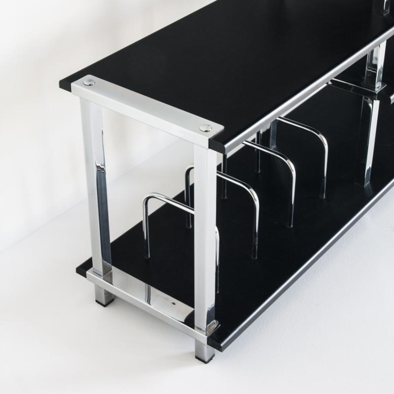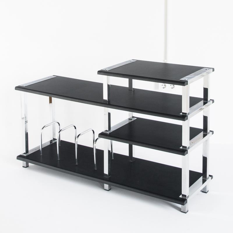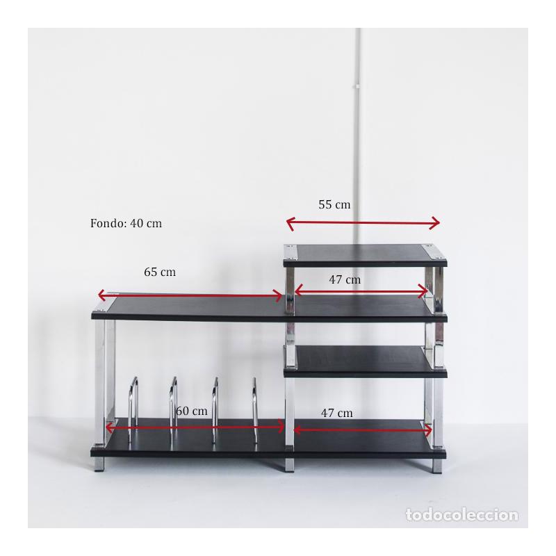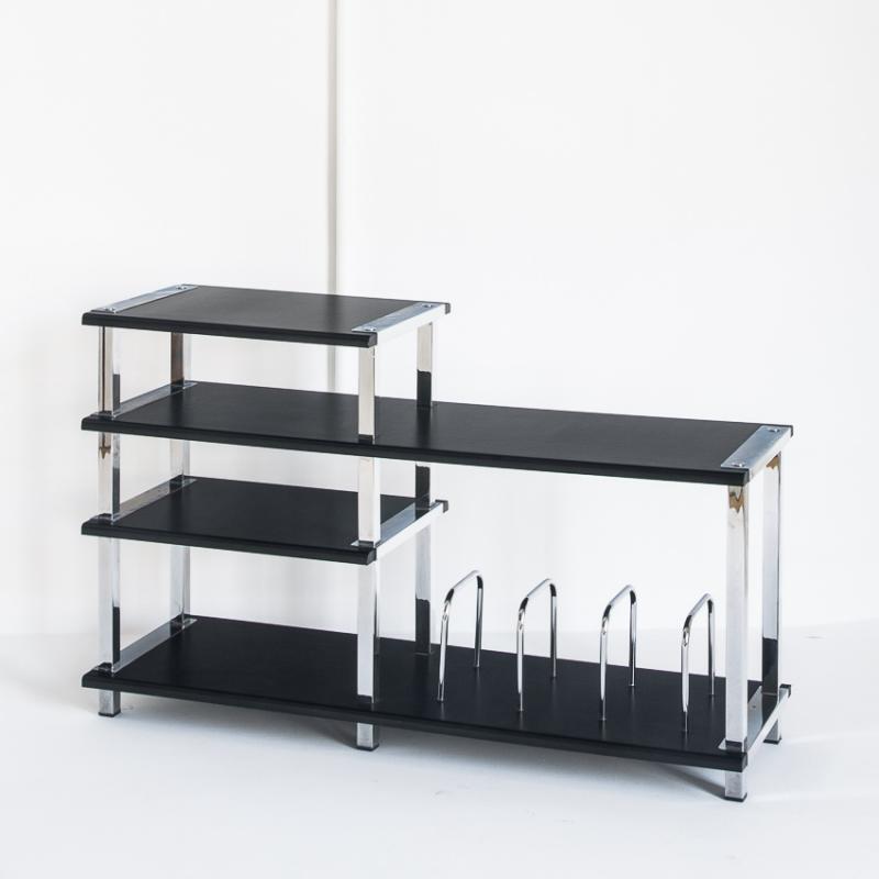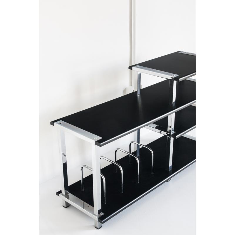 Gran mueble Hi-Fi vintage. Madera lacada y hierro cromado. España, años 80.