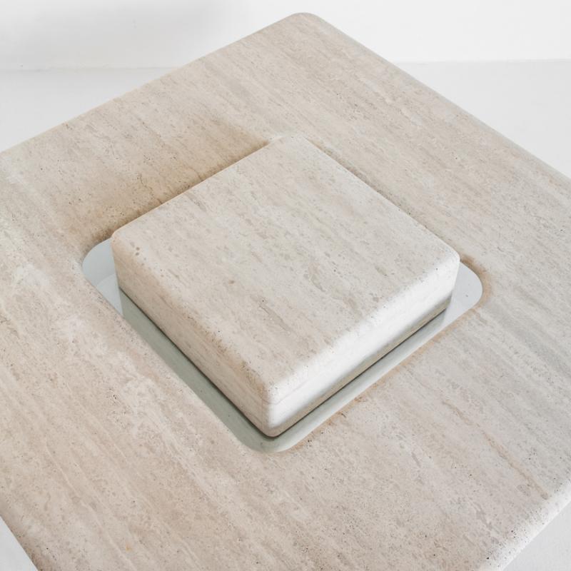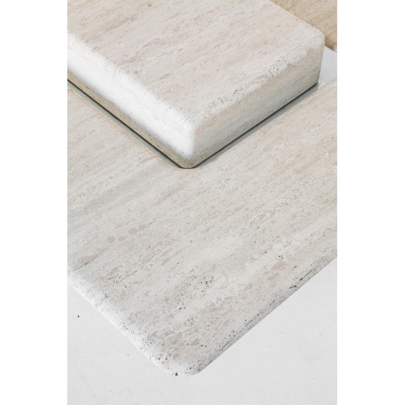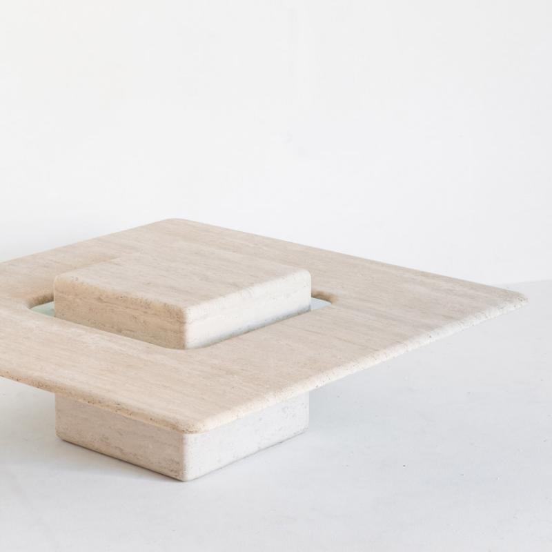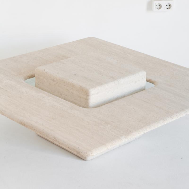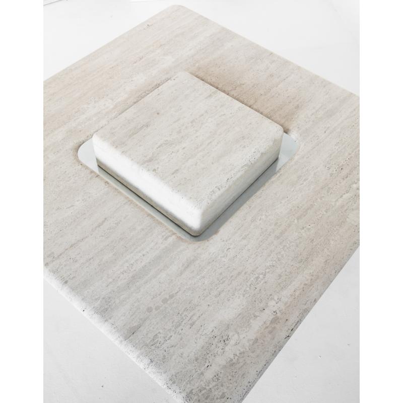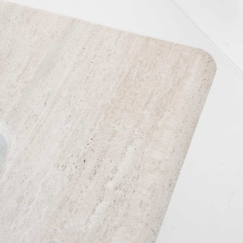 Gran mesa de mármol travertino vintage. Francia, años 90.