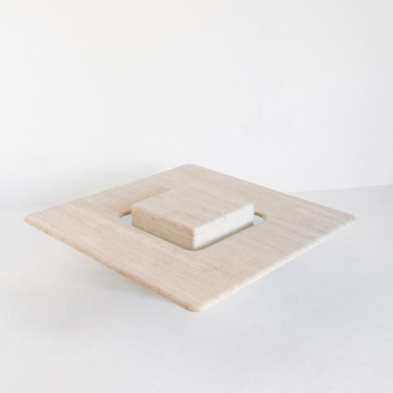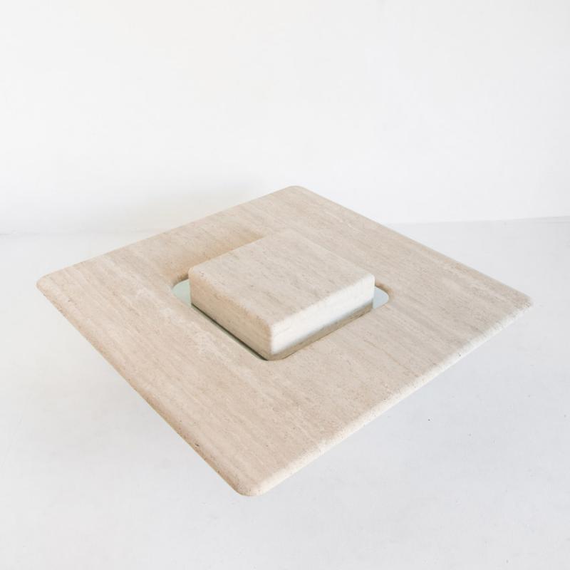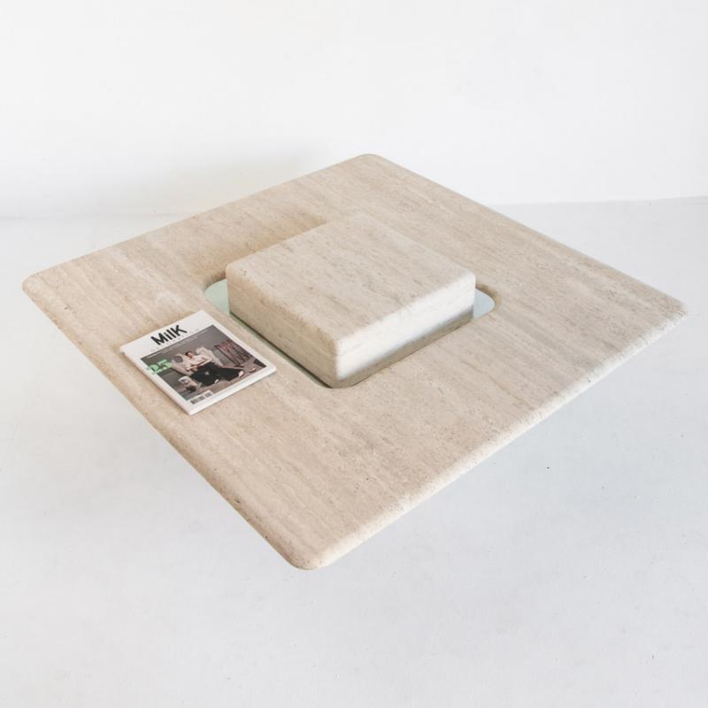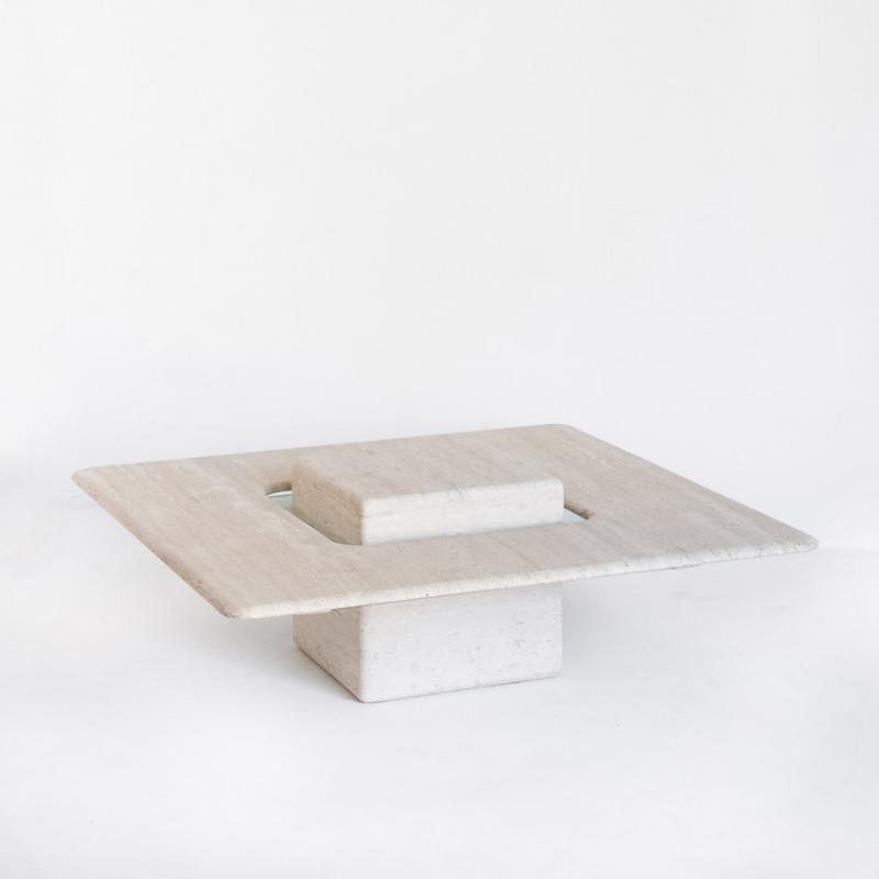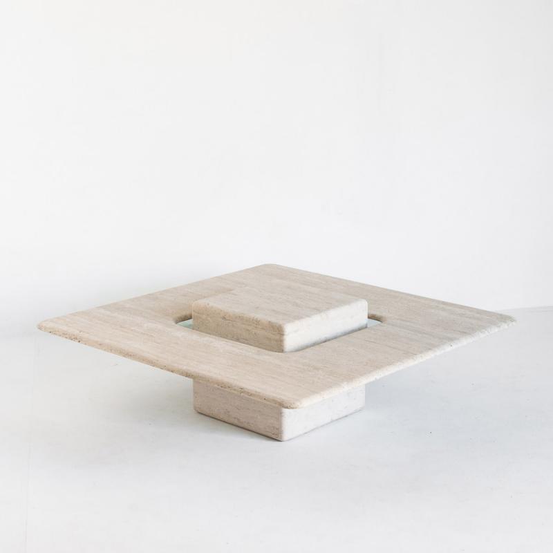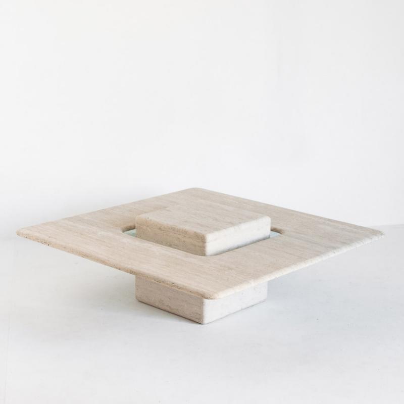 Gran mesa de mármol travertino vintage. Francia, años 90.