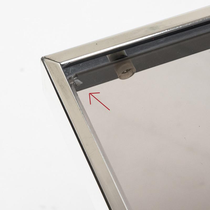 Pequeño toque en una esquina del cristal inferior de apenas 1 x 1 cm. Poco visible (ver últimas fotos).