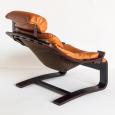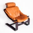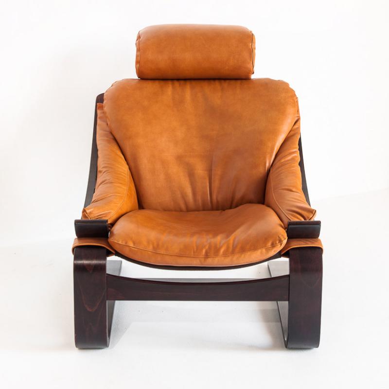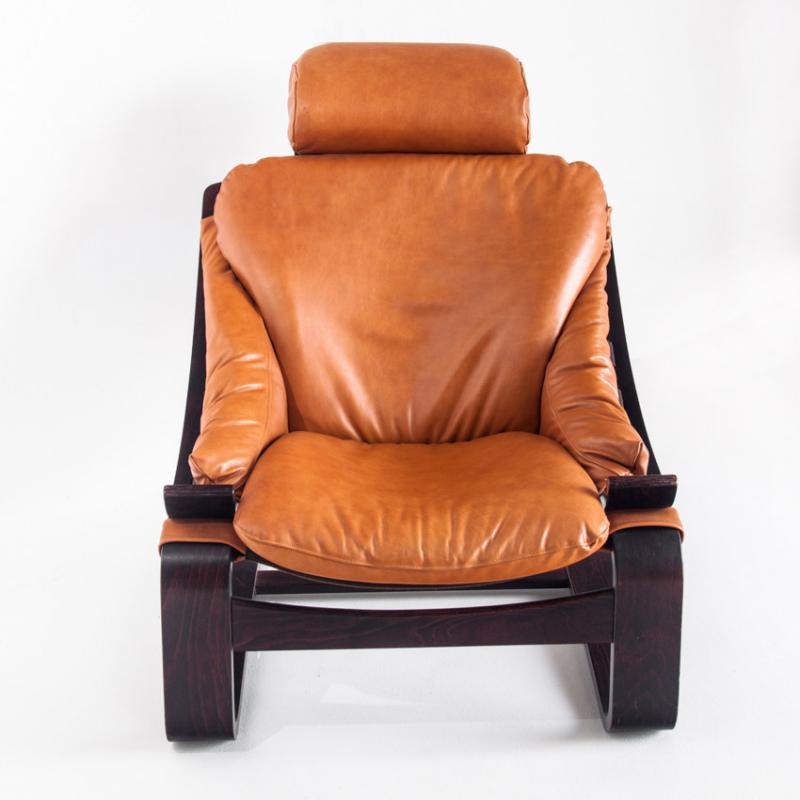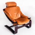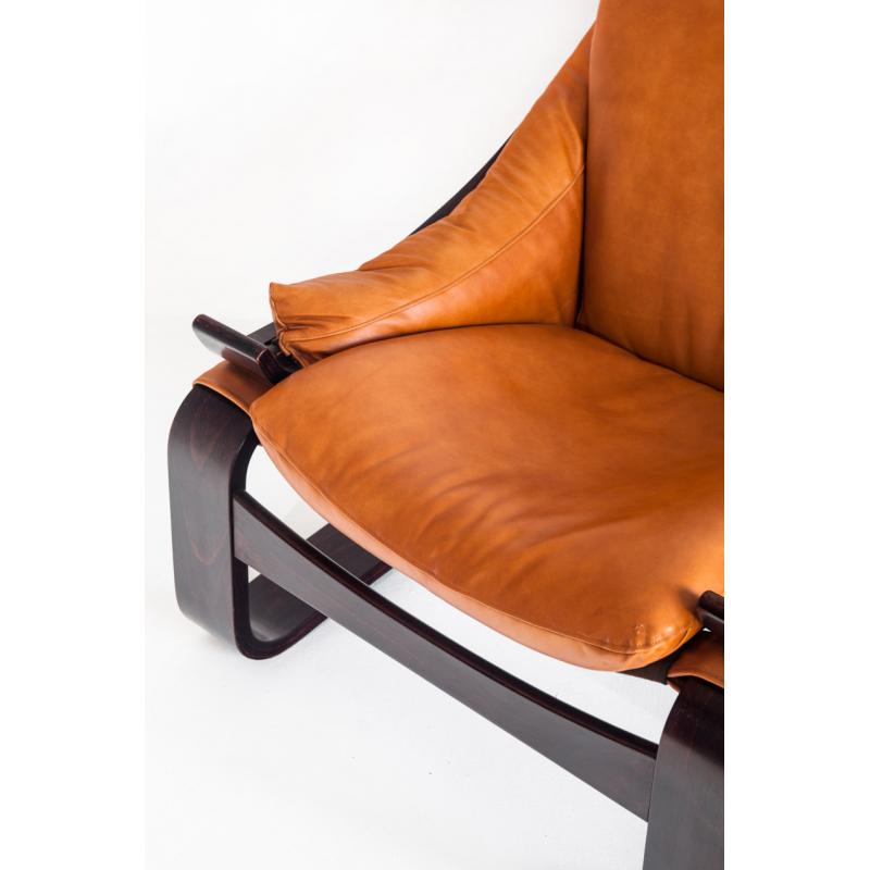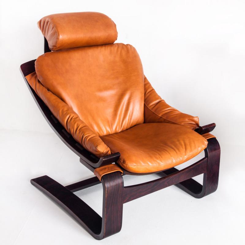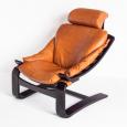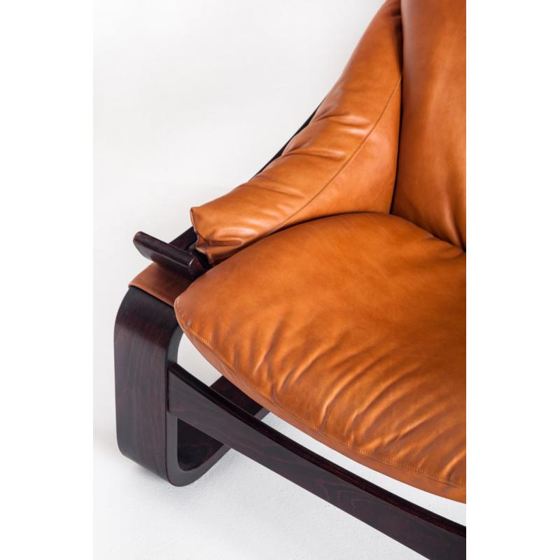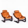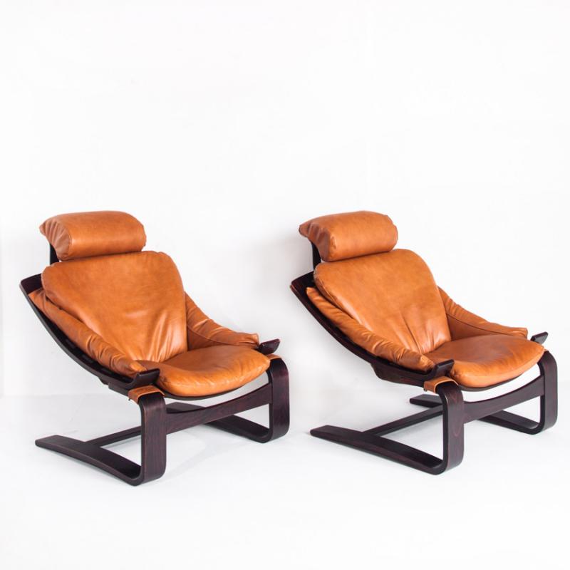 Pareja de butacas Kroken de cuero y madera curvada. Diseño de Ake Fribytter. Edición Roche Bobois - Francia, años 80.
