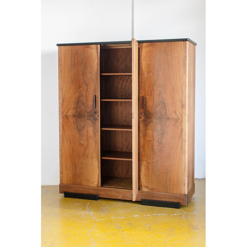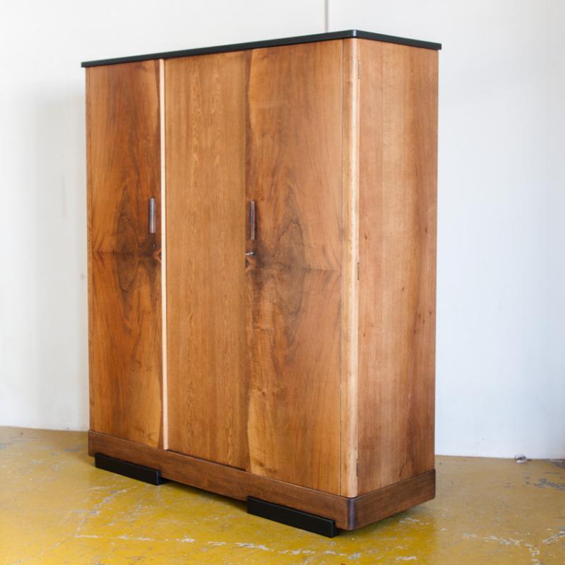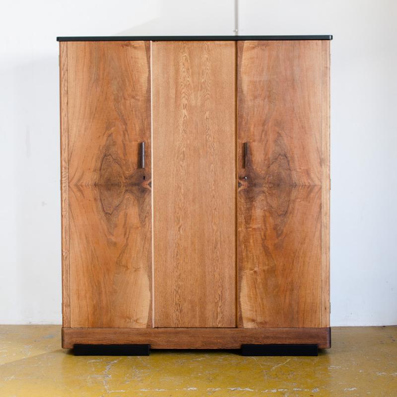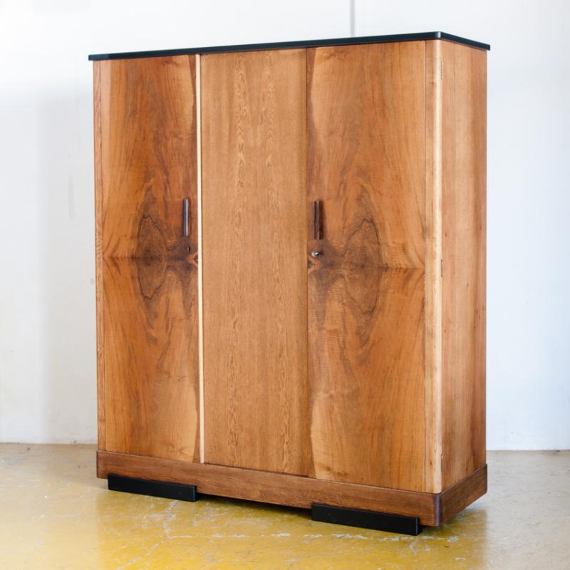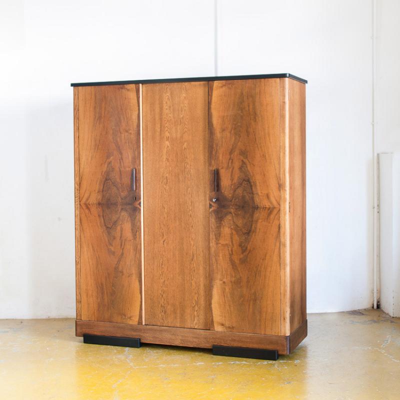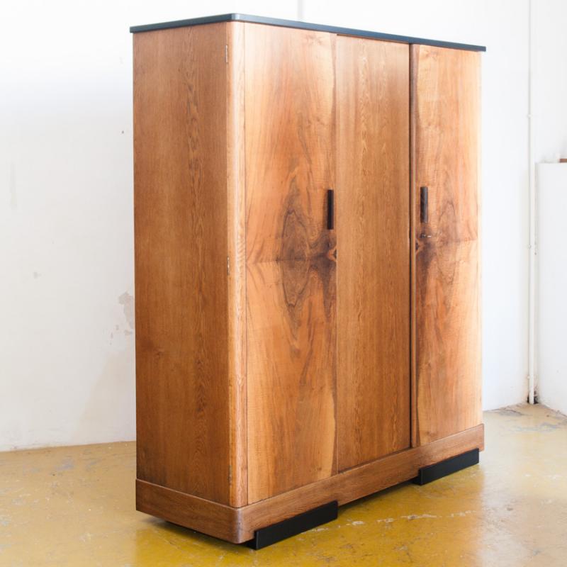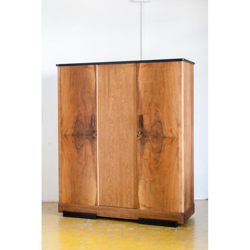 Armario ropero tres puertas con dos espejos. Holanda, años 50. Madera de roble y raiz de nogal en las puertas derecha e izquierda.