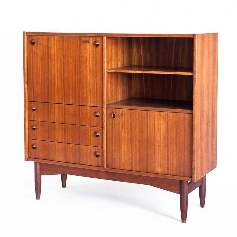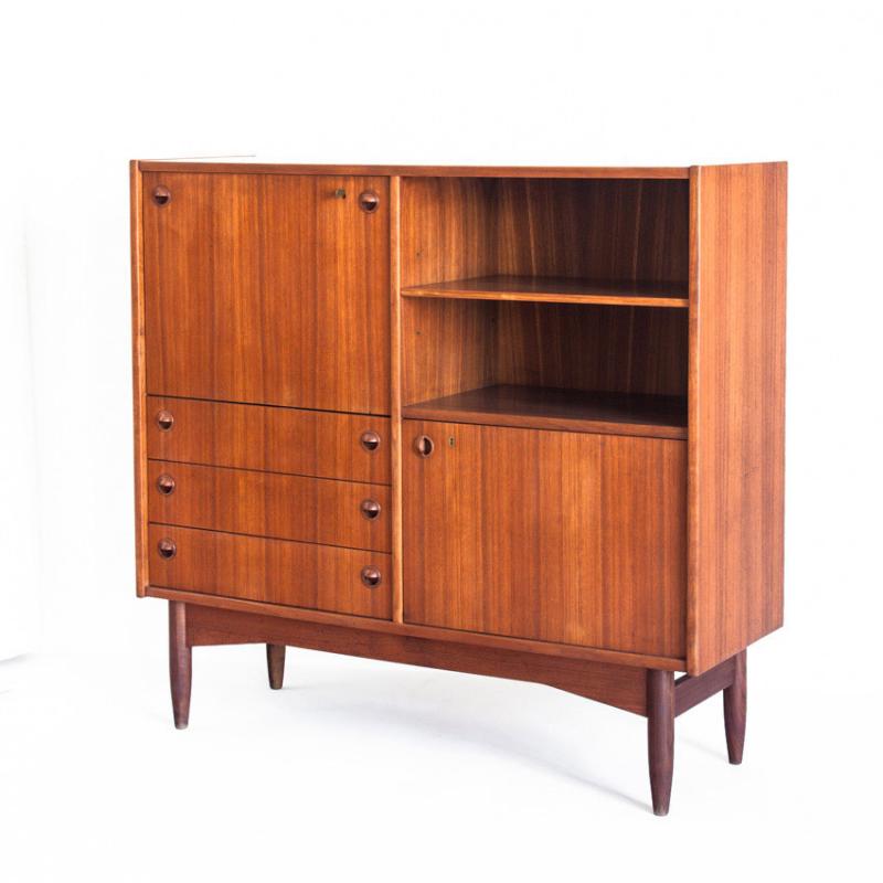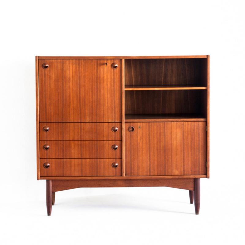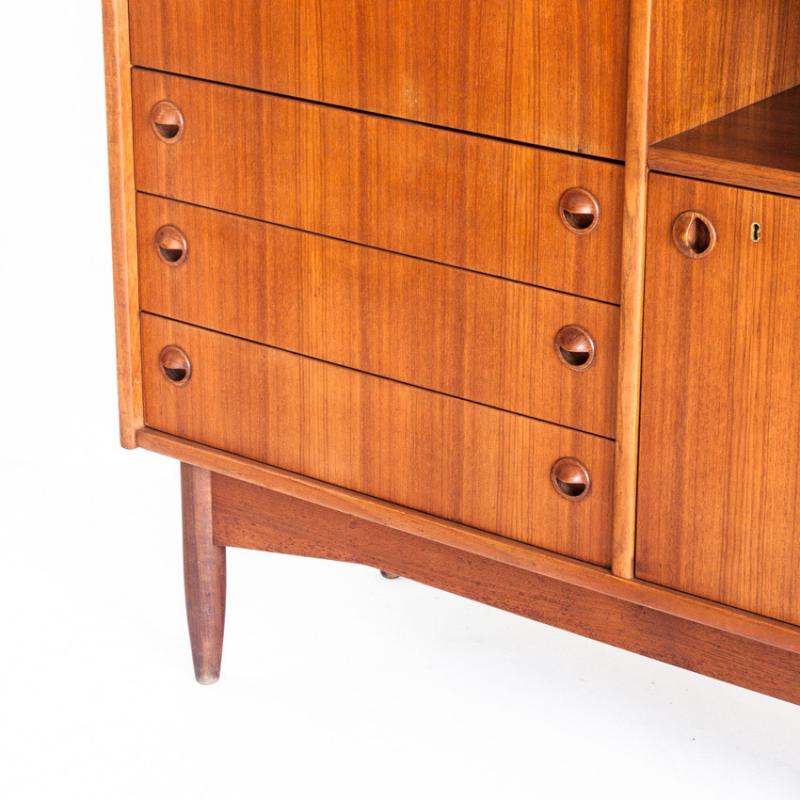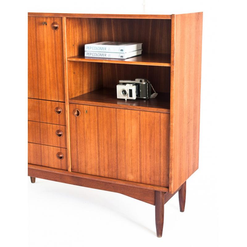 Aparador alto estilo escandinavo. Madera de teca. Francia, años 60