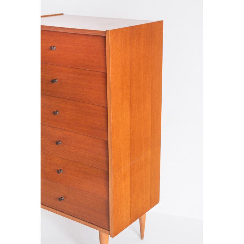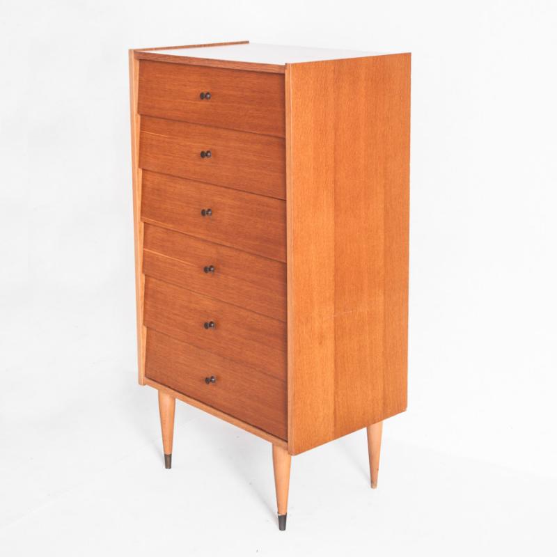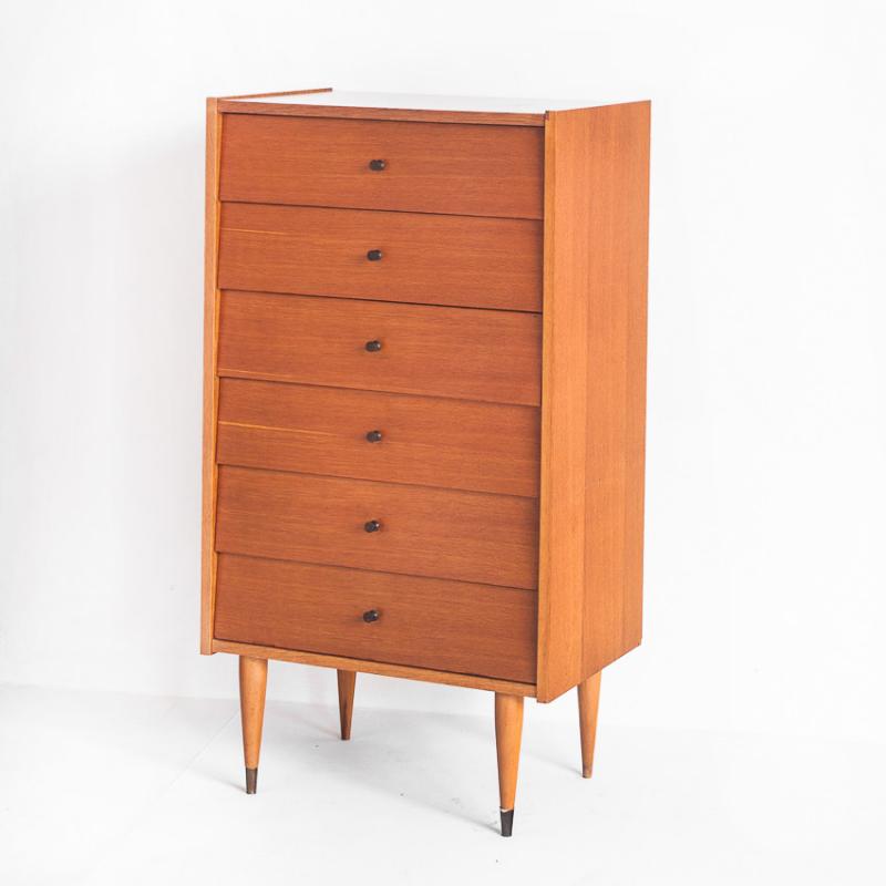 Cómoda alta de 6 cajones. Vintage - Midcentury - Francia, años 60.