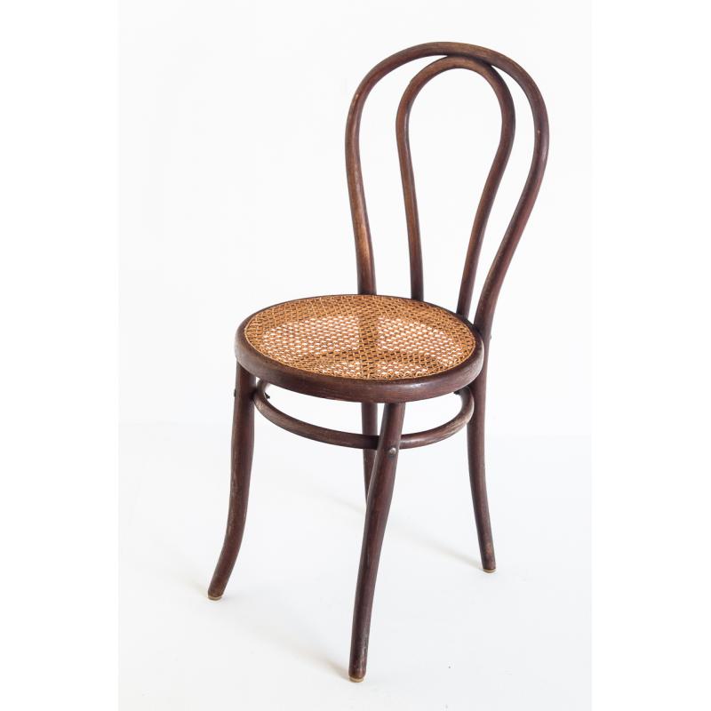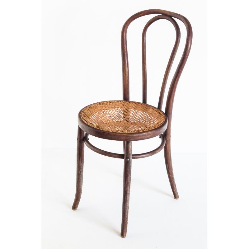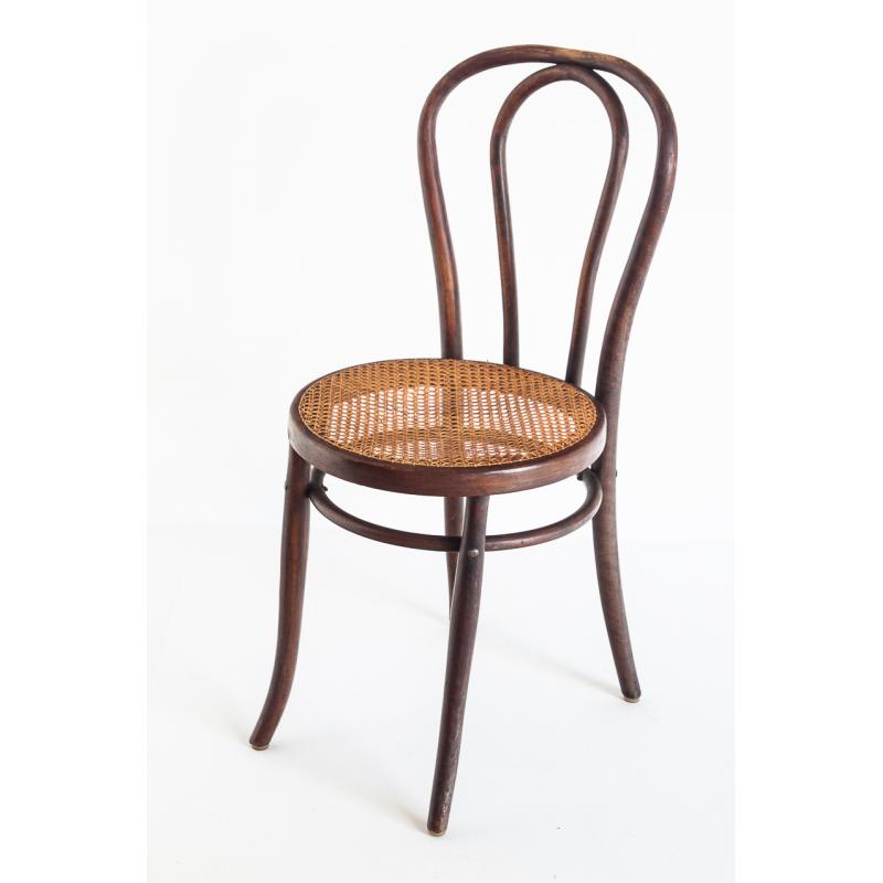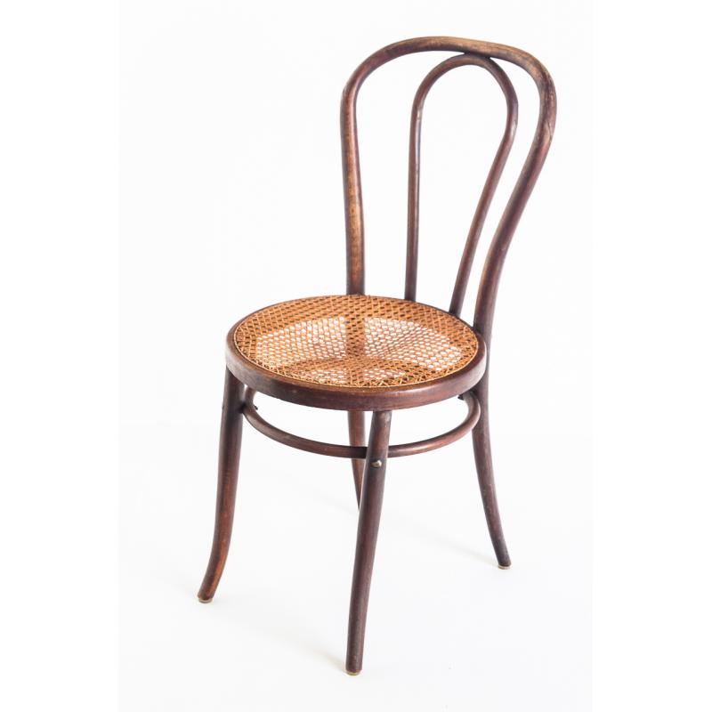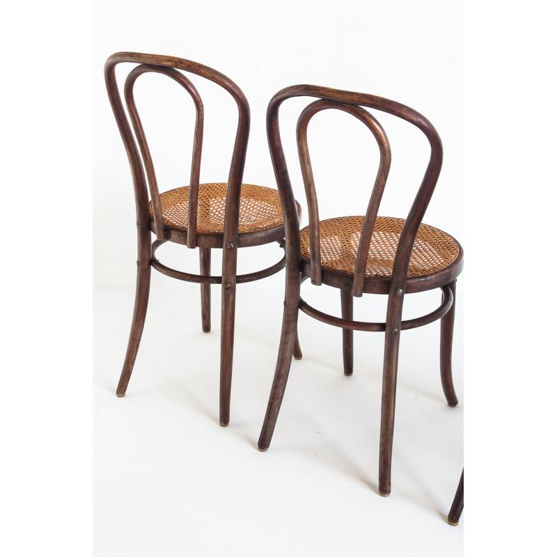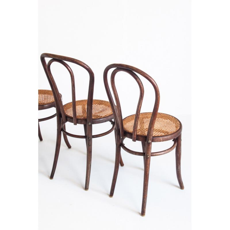 Conjunto de 4 sillas estilo Thonet. Madera curvada y rejilla. Vintage. Francia, años 50.