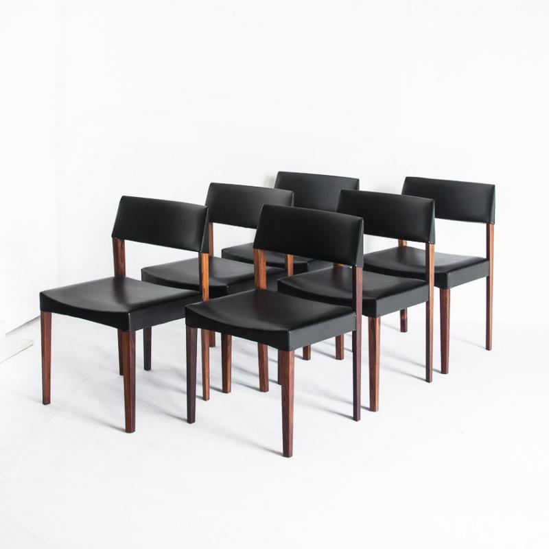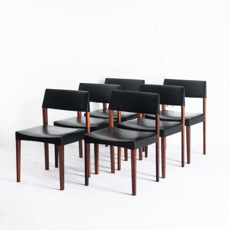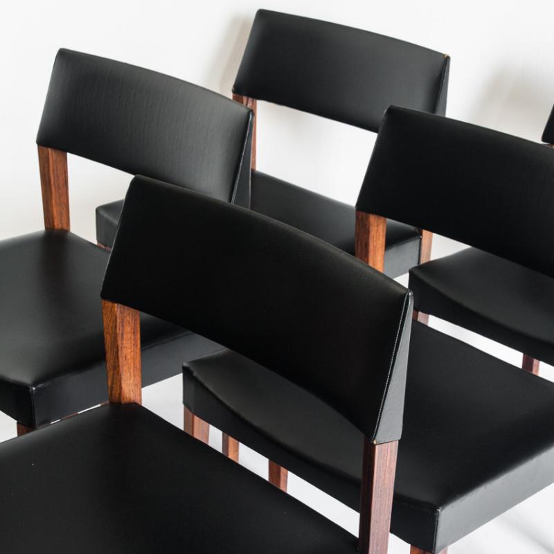 Conjunto de 6 sillas de estilo escandinavo. Madera de palisandro - Francia, años 60.